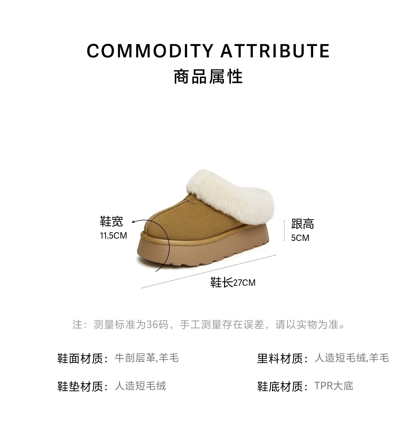 | 色系:黄色 | 跟高数值:5CM | 适用人群:女子 | 性别:女子 | 里料材质:羊毛人造短毛绒 |