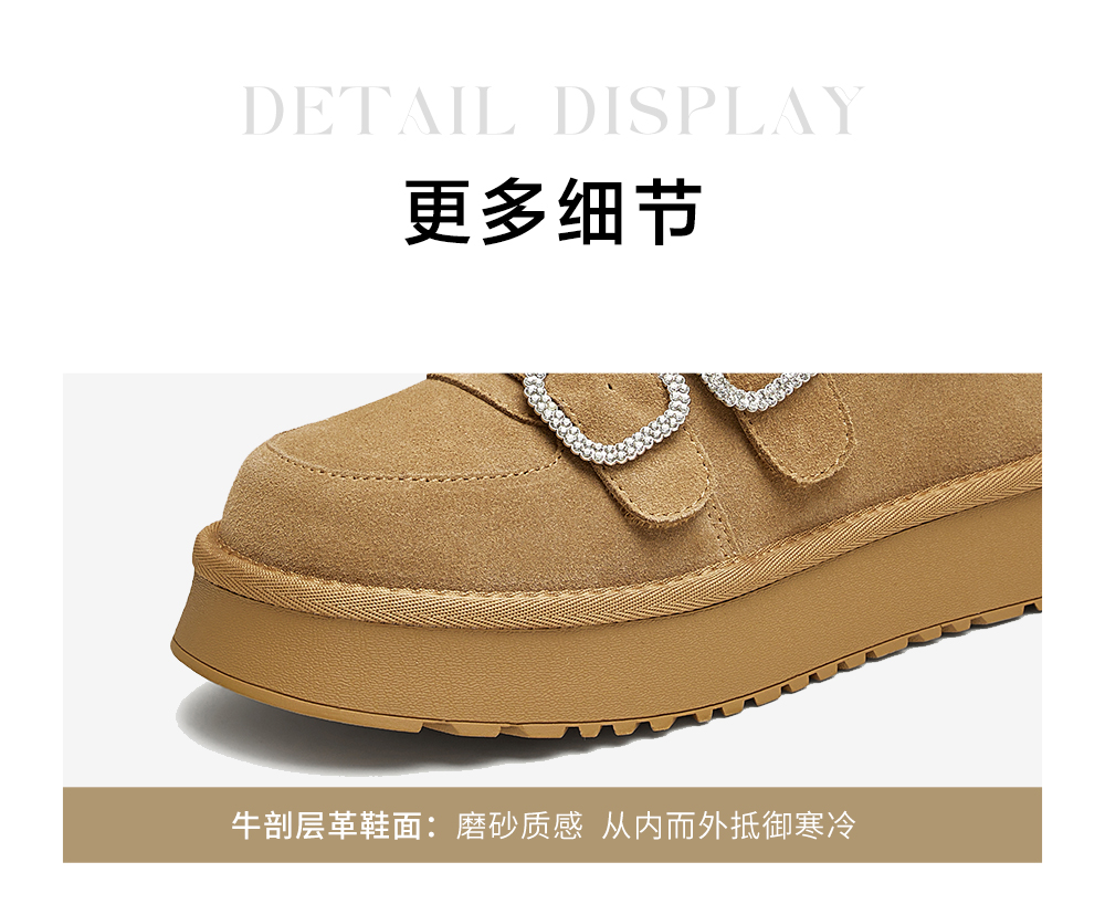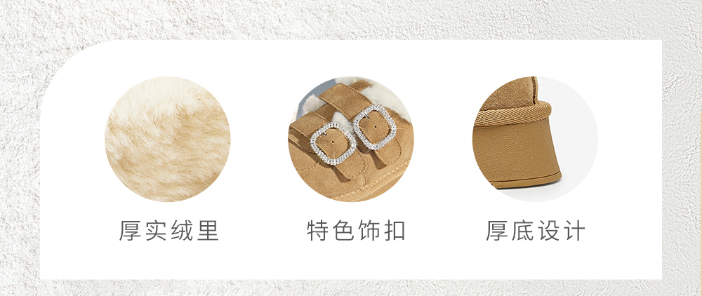 | 鞋垫材质:人造短毛绒 | 款式季节:冬季 | 前掌高度:3.5CM | 皮质特征:软面皮 | 防水台高度:无 |