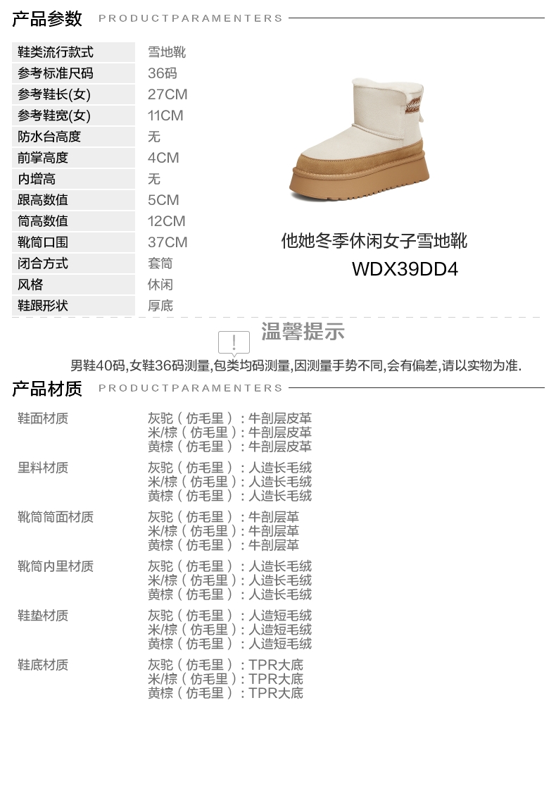 • TATA/他她2024冬商场同款时尚休闲雪地靴女新款WDX39DD4