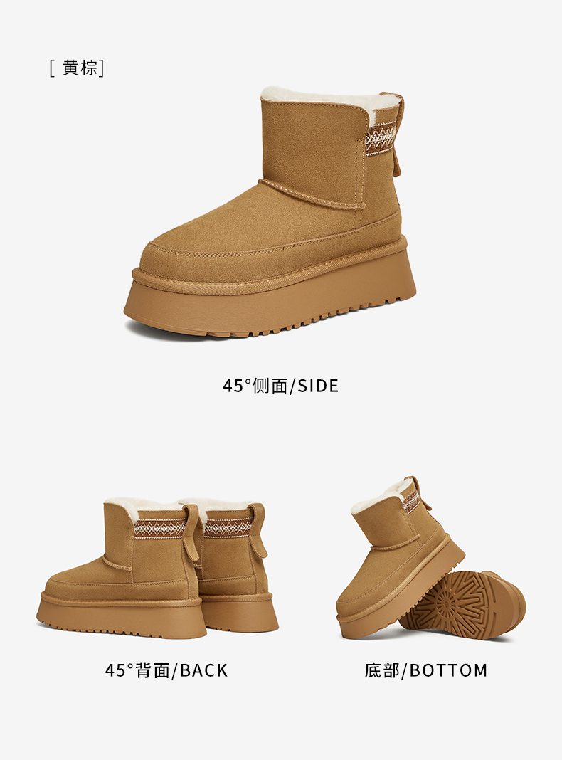 帮面材质:牛剖层革 配跟:有 靴筒口围:37CM 上市时间:2024年冬季 鞋类流行款式:雪地靴