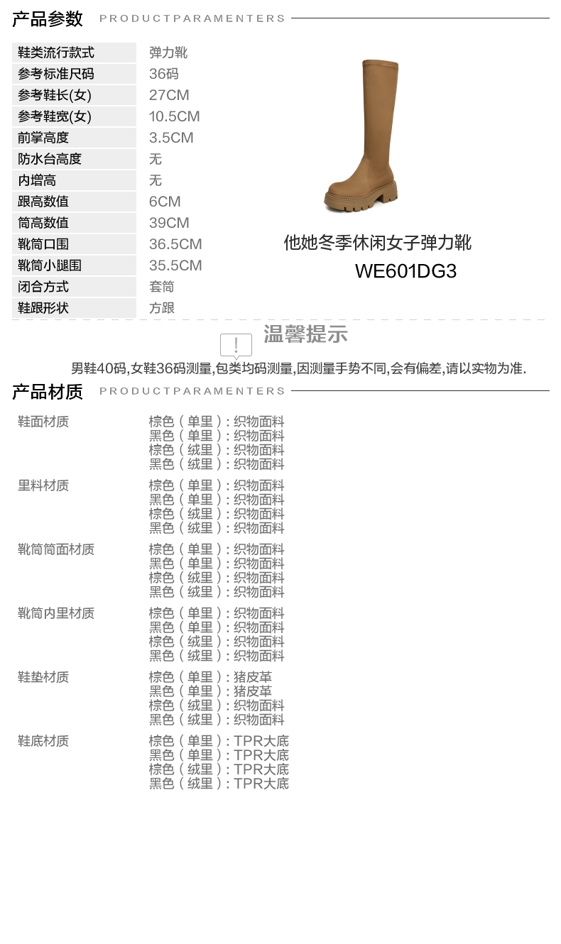 | 配跟:有 | 靴筒口围:36.5CM | 上市时间:2023年冬季 | 鞋类流行款式:弹力靴 | 鞋头款式:圆头 |