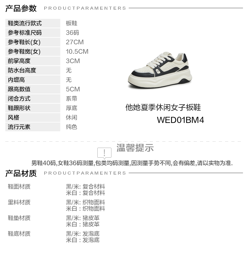 | 鞋跟形状:厚底 | 参考鞋长(女):27CM | 流行元素:纯色 | 参考鞋宽(女):10.5CM | 风格:休闲 |