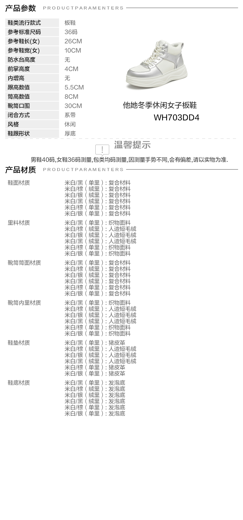 | 款式季节:冬季 | 前掌高度:4CM | 皮质特征:软面皮 | 防水台高度:无 |