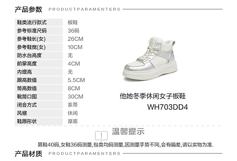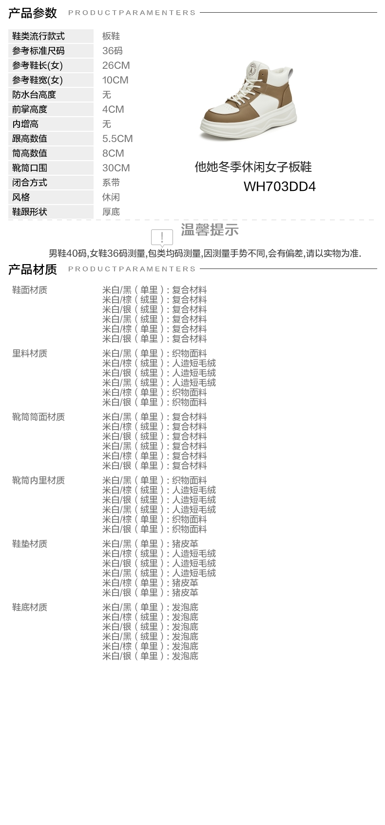 | 帮面材质:复合材料 | 配跟:有 | 靴筒口围:30CM | 上市时间:2024年冬季 | 鞋类流行款式:板鞋 |