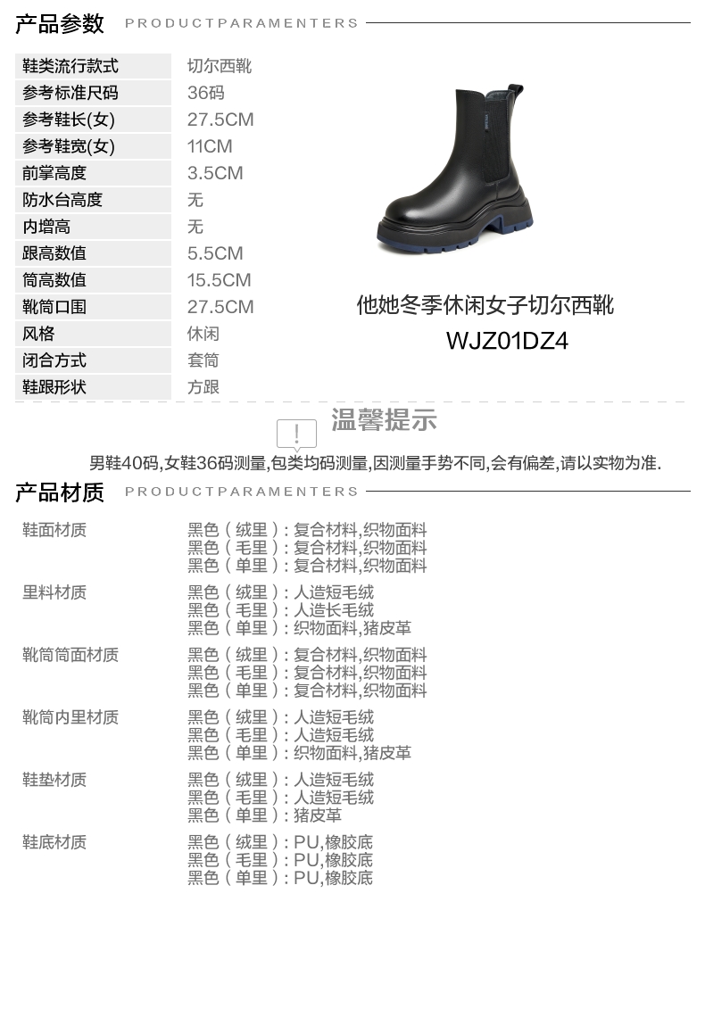| 配跟:无 | 靴筒口围:27.5CM | 上市时间:2024年冬季 | 鞋类流行款式:切尔西靴 | 鞋头款式:圆头 |