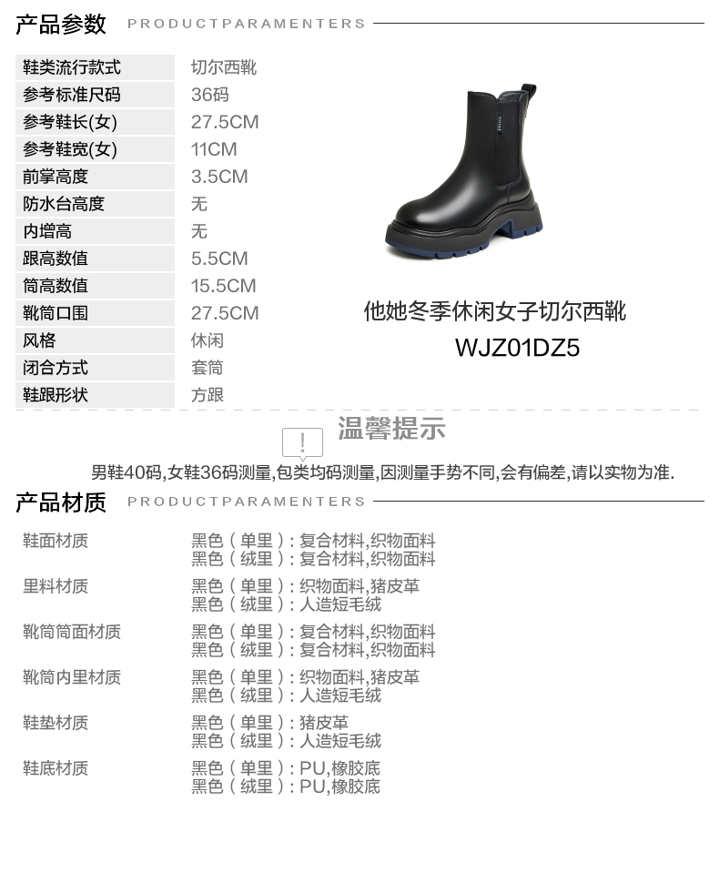 | 配跟:无 | 靴筒口围:27.5CM | 上市时间:2025年冬季 | 鞋类流行款式:切尔西靴 | 鞋头款式:圆头 |