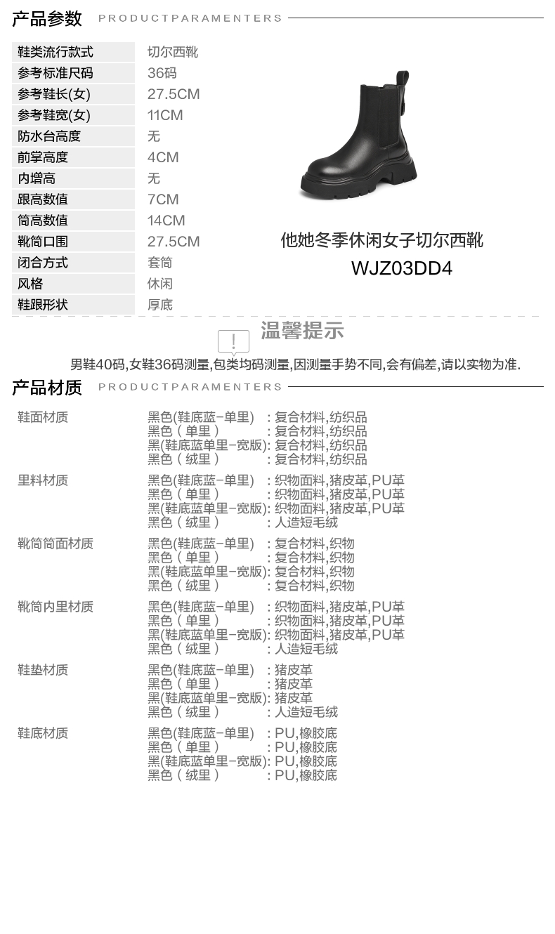 | 靴筒口围:27.5CM | 风格分类:切尔西靴 | 上市时间:2024年冬季 | 生产/经销/进口厂家:丽荣鞋业(深圳)有限公司 | 鞋类流行款式:切尔西靴 |
