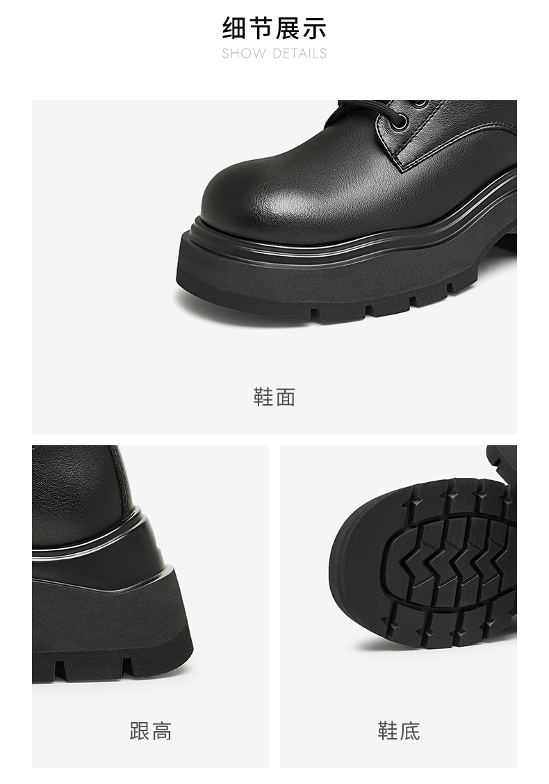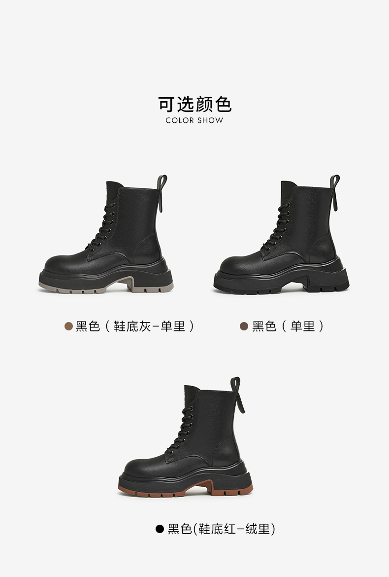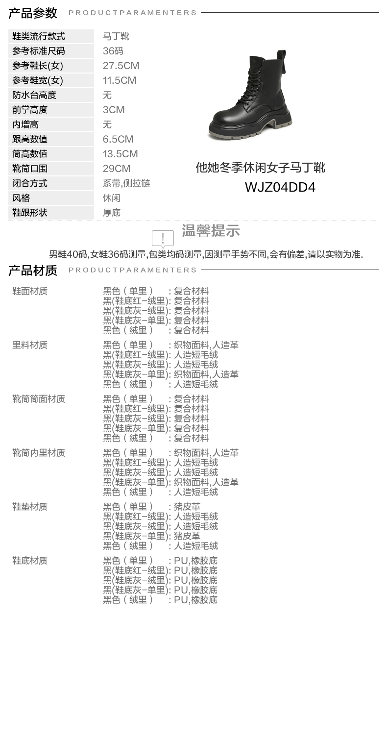 | 帮面材质:复合材料 | 配跟:有 | 靴筒口围:29CM | 上市时间:2024年冬季 | 鞋类流行款式:马丁靴 |