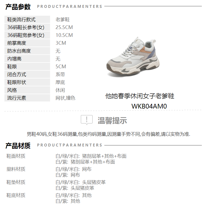 | 流行元素:网状撞色 | 参考鞋宽(女):10.5CM | 风格:休闲 | 鞋跟:5CM | 色系:白色 |