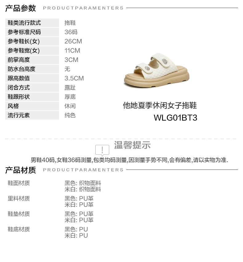 | 前掌高度:3CM | 皮质特征:织物 | 销售季:2023年夏季 | 防水台高度:无 |