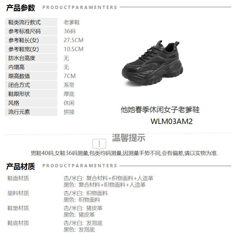 | 皮质特征:织物 | 防水台高度:无 | 鞋类流行款式:老爹鞋 |