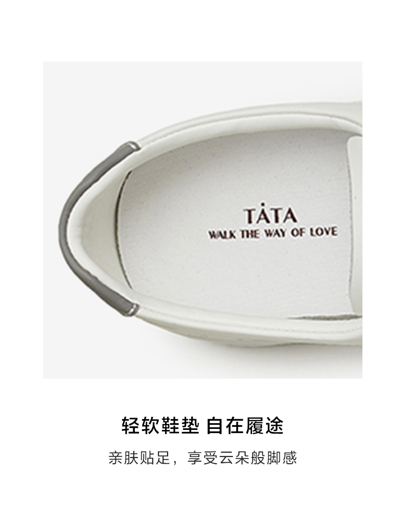 他她(Tata),品牌成立于2003年,致力为都市年轻人群提供时尚潮流、具有性价比的鞋履产品。十五年来“踏踏”的着地声,寓意都市白领元气满满的生活,如时尚“伴履”的TATA一直陪伴左右、伴随走出TATA的时尚步伐。2017年TATA美丽蜕变,TATA STAR元素的加入预示品牌将成为闪亮、前端的时尚鞋履品牌。