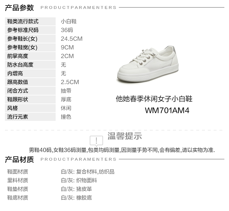 | 鞋跟形状:厚底 | 参考鞋长(女):24.5CM | 流行元素:撞色 | 参考鞋宽(女):9CM | 风格:休闲 |