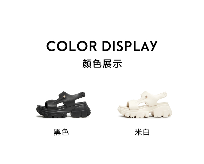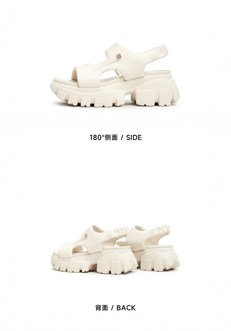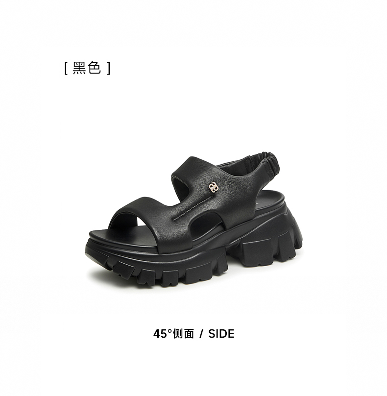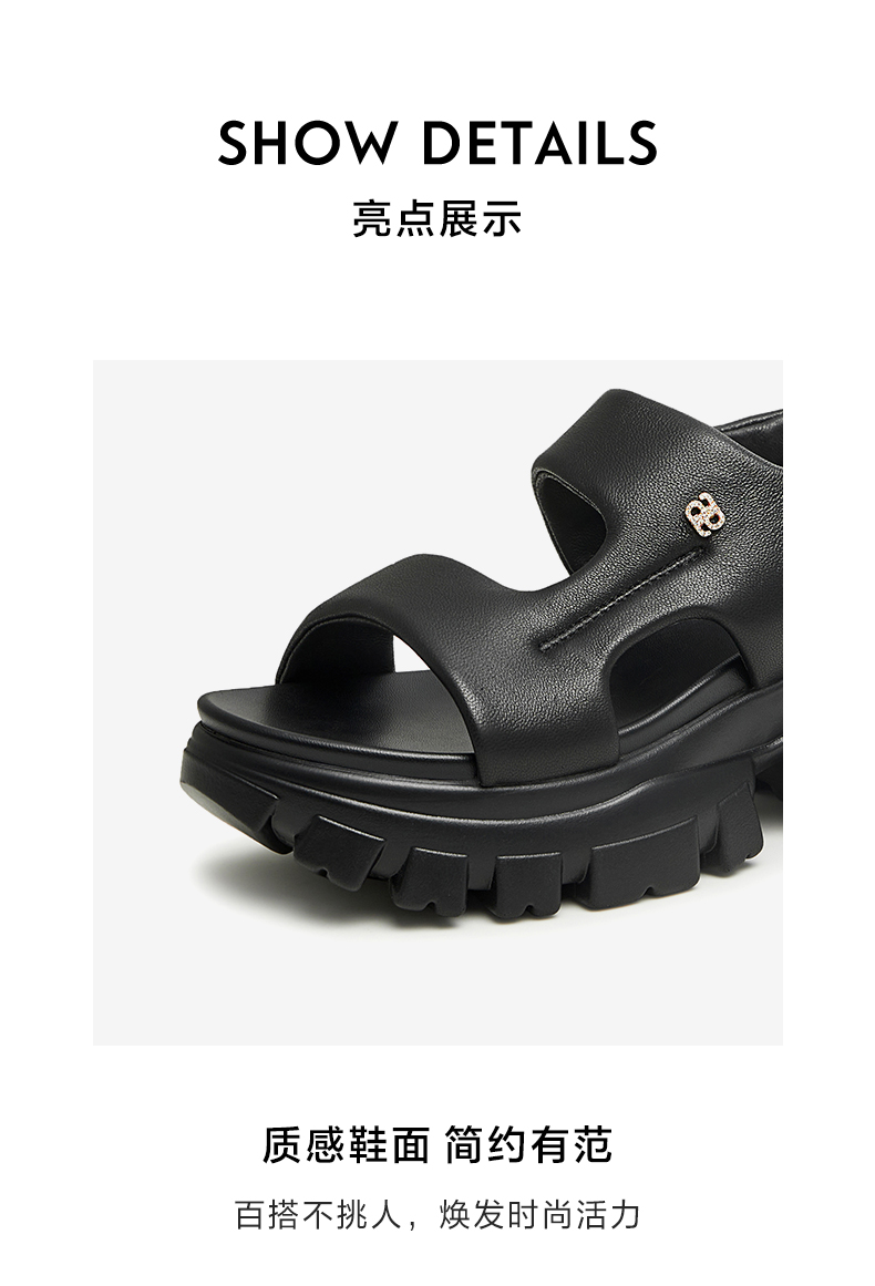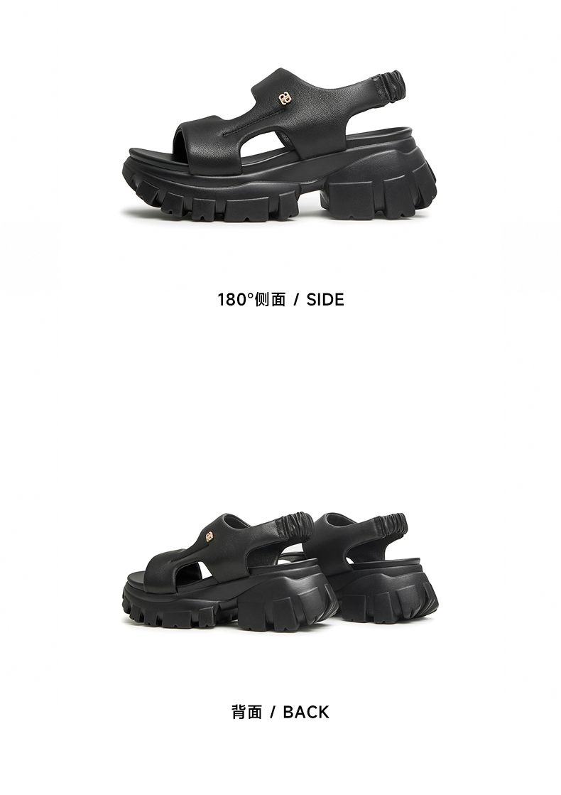 | 鞋头款式:露趾 | 鞋底材质:橡胶底 | 鞋面图案:纯色 | 鞋跟形状:厚底 | 鞋面材质:羊皮革 |