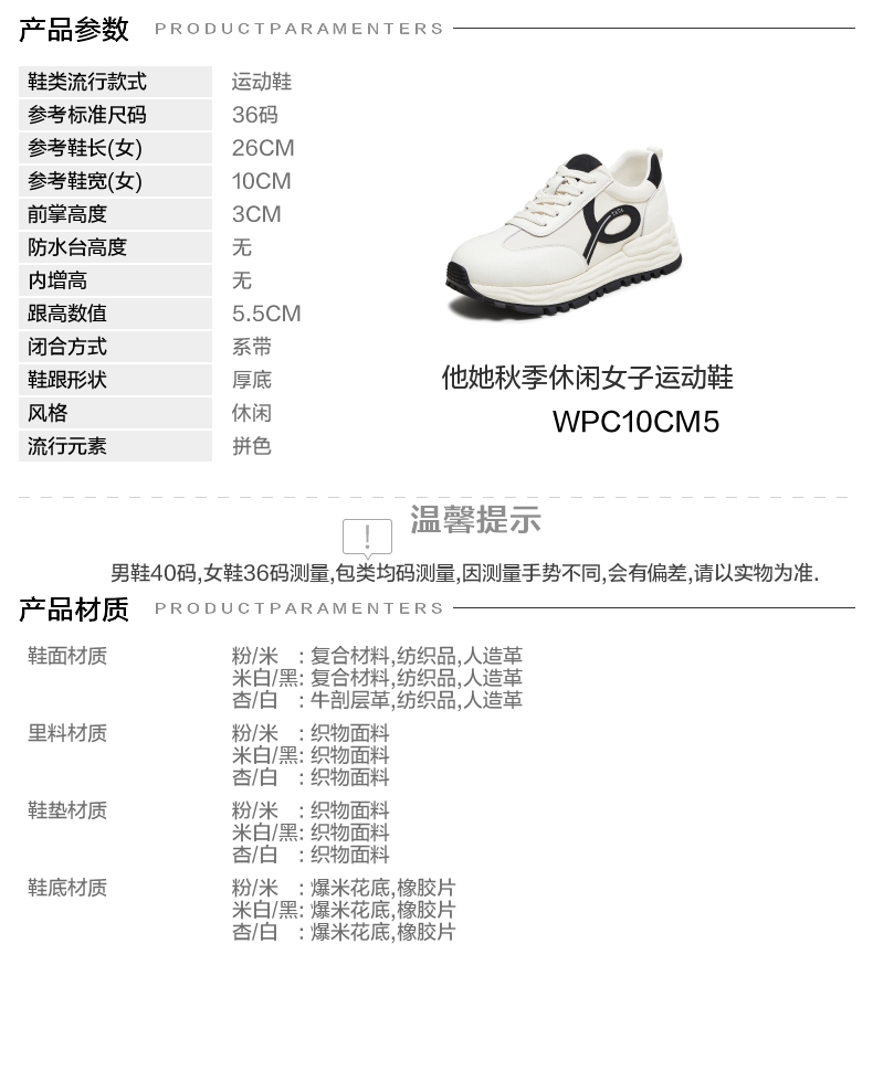 | 鞋跟形状:厚底 | 参考鞋长(女):26CM | 流行元素:拼色 | 参考鞋宽(女):10CM | 风格:休闲 |