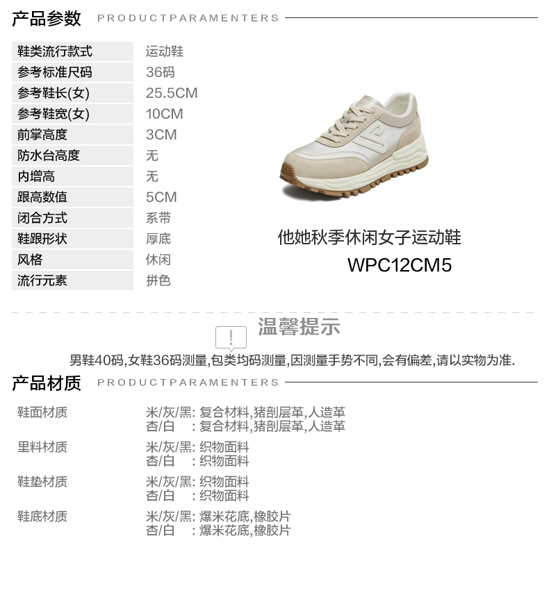 | 鞋跟形状:厚底 | 参考鞋长(女):25.5CM | 流行元素:拼色 | 参考鞋宽(女):10CM | 风格:休闲 |