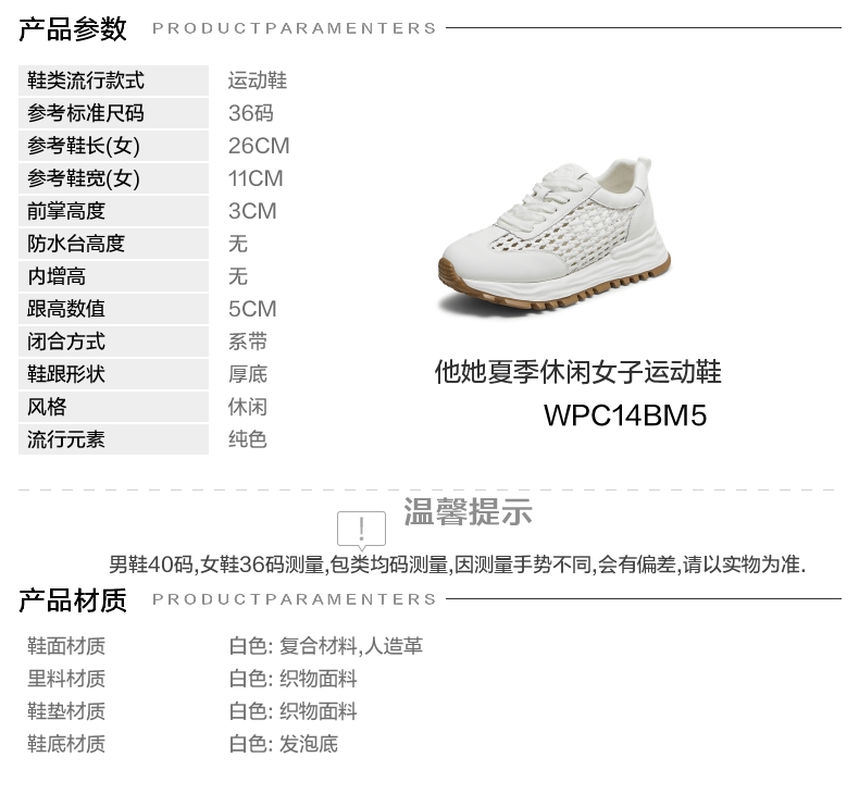 | 鞋跟形状:厚底 | 参考鞋长(女):26CM | 流行元素:纯色 | 参考鞋宽(女):11CM | 风格:休闲 |