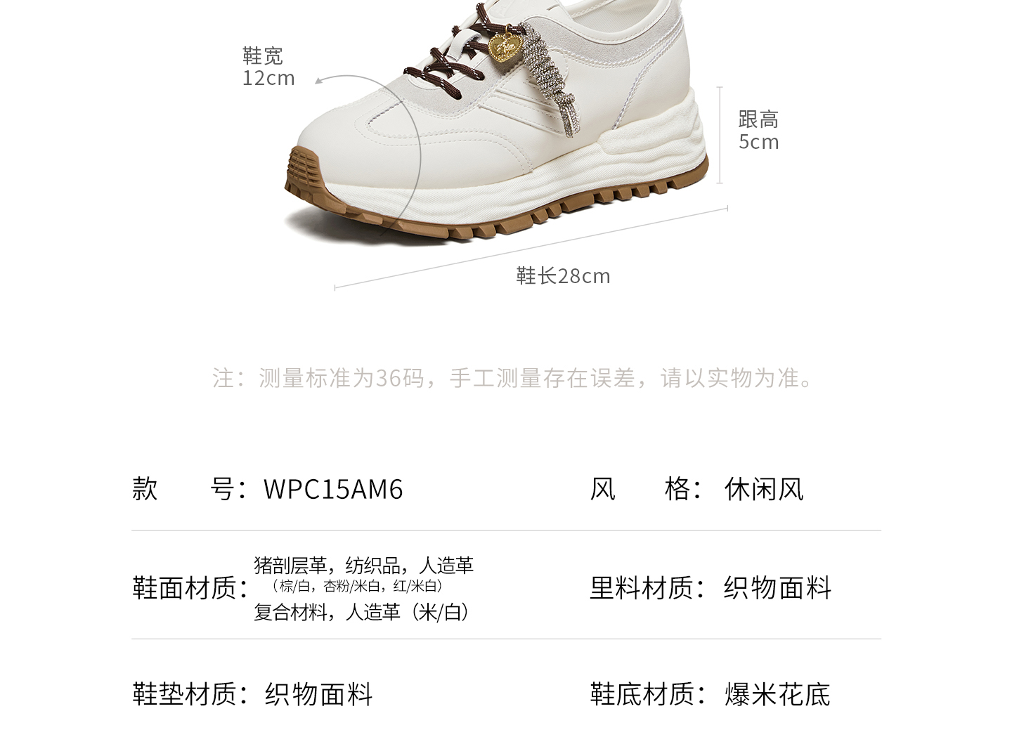 | 鞋跟形状:厚底 | 参考鞋长(女):26.5CM | 流行元素:拼色 | 参考鞋宽(女):10CM | 风格:休闲 |