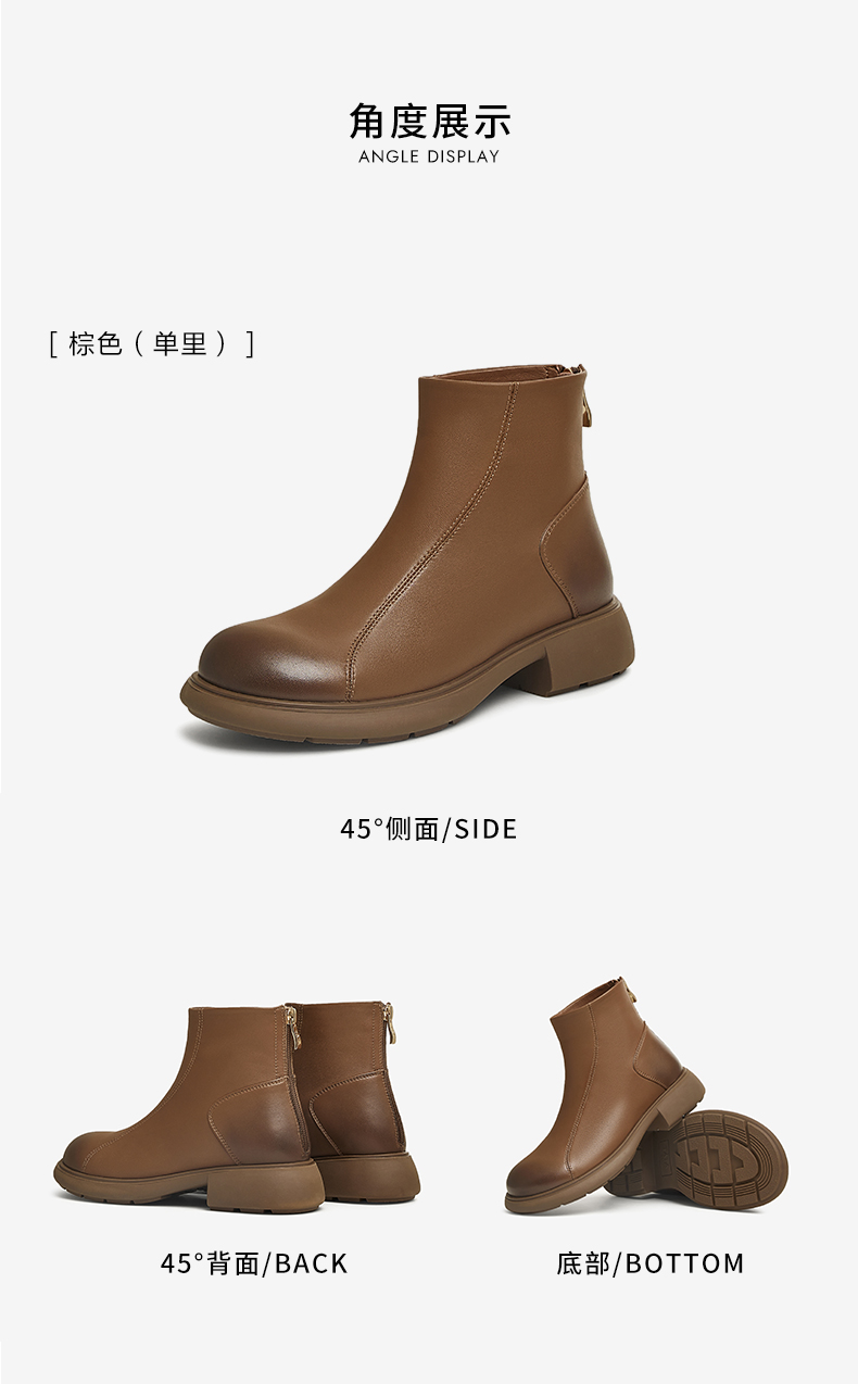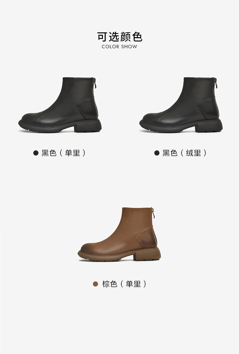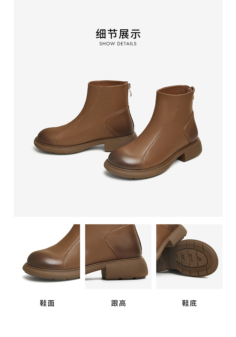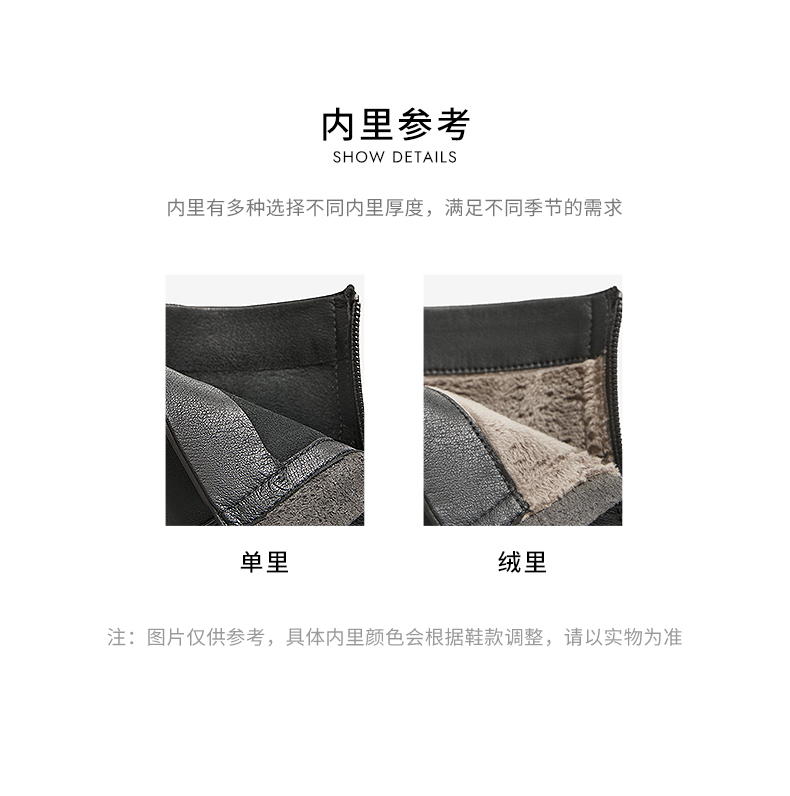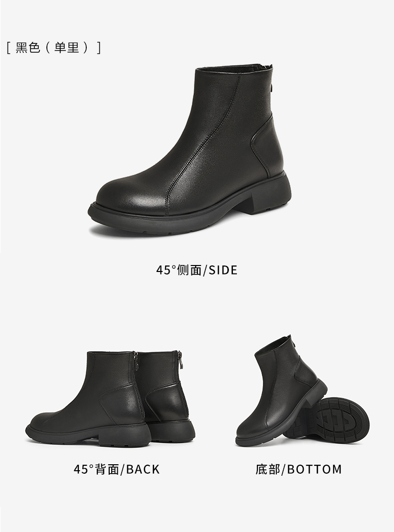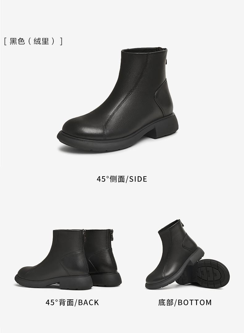 | 鞋底材质:橡胶底 | 靴筒内里材质:织物面料超纤 | 内增高:无 | 鞋面材质:羊皮革 | 闭合方式:后拉链 |