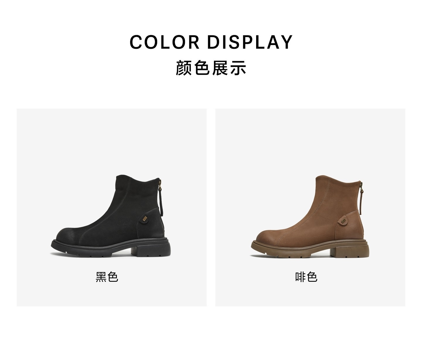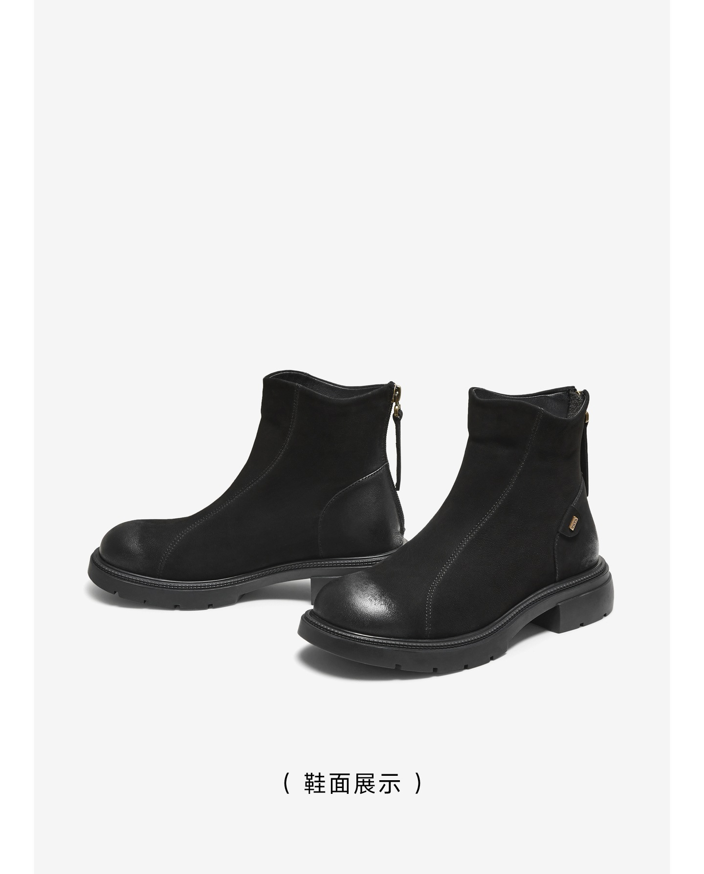 | 鞋底材质:橡胶底 | 靴筒内里材质:PU革织物面料 | 内增高:无 | 鞋面材质:羊皮革 | 闭合方式:后拉链 |