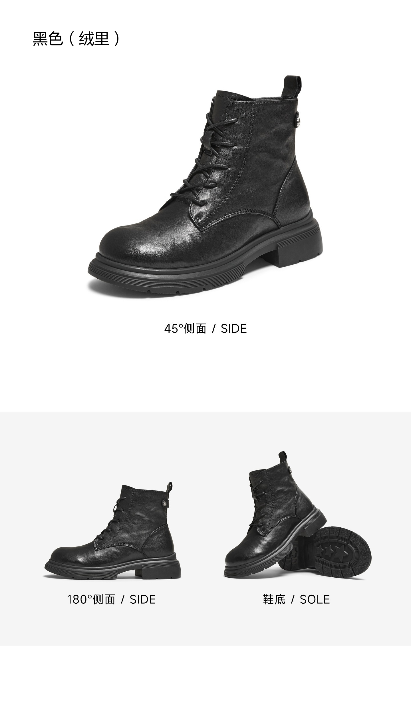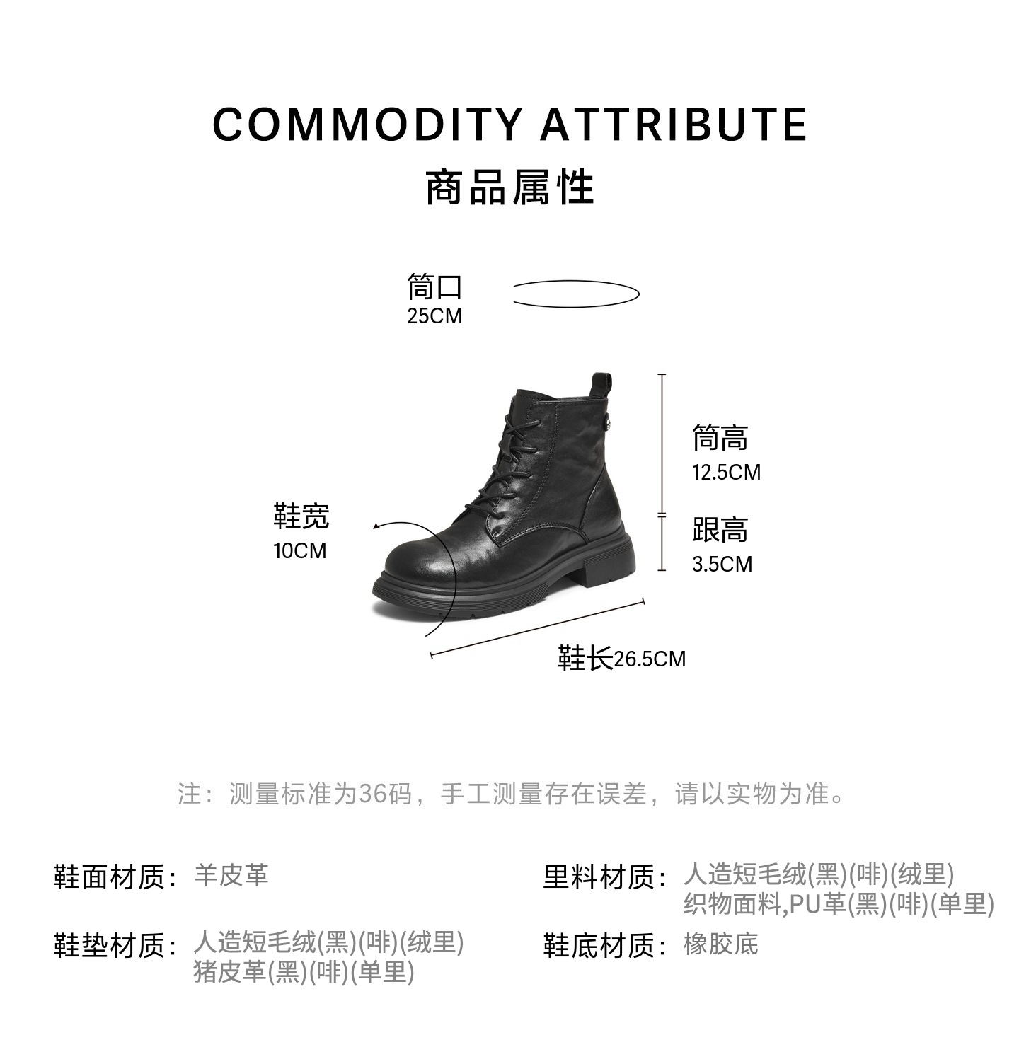| 帮面材质:羊皮 | 配跟:有 | 靴筒口围:25CM | 上市时间:2025年冬季 | 鞋类流行款式:马丁靴 |