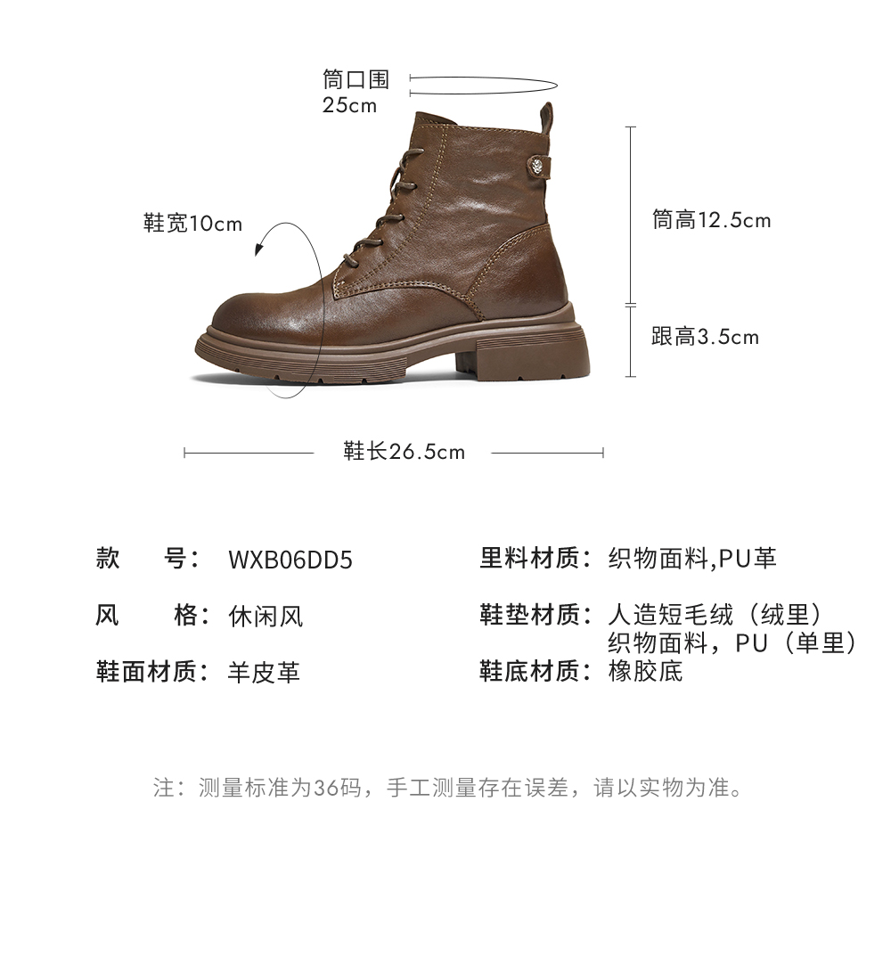 | 帮面材质:羊皮 | 配跟:有 | 靴筒口围:25CM | 上市时间:2025年冬季 | 鞋类流行款式:马丁靴 |
