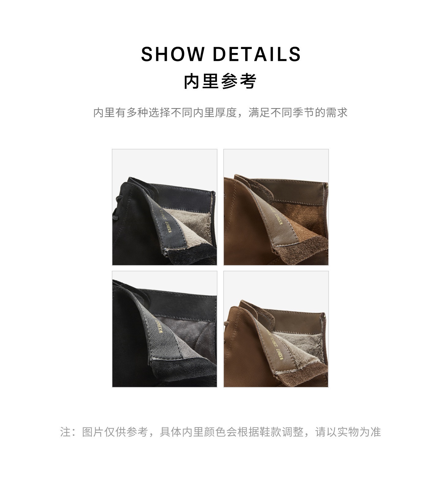 | 鞋底材质:TPR大底 | 靴筒内里材质:人造短毛绒 | 内增高:无 | 鞋面材质:羊皮革 | 闭合方式:后拉链 |