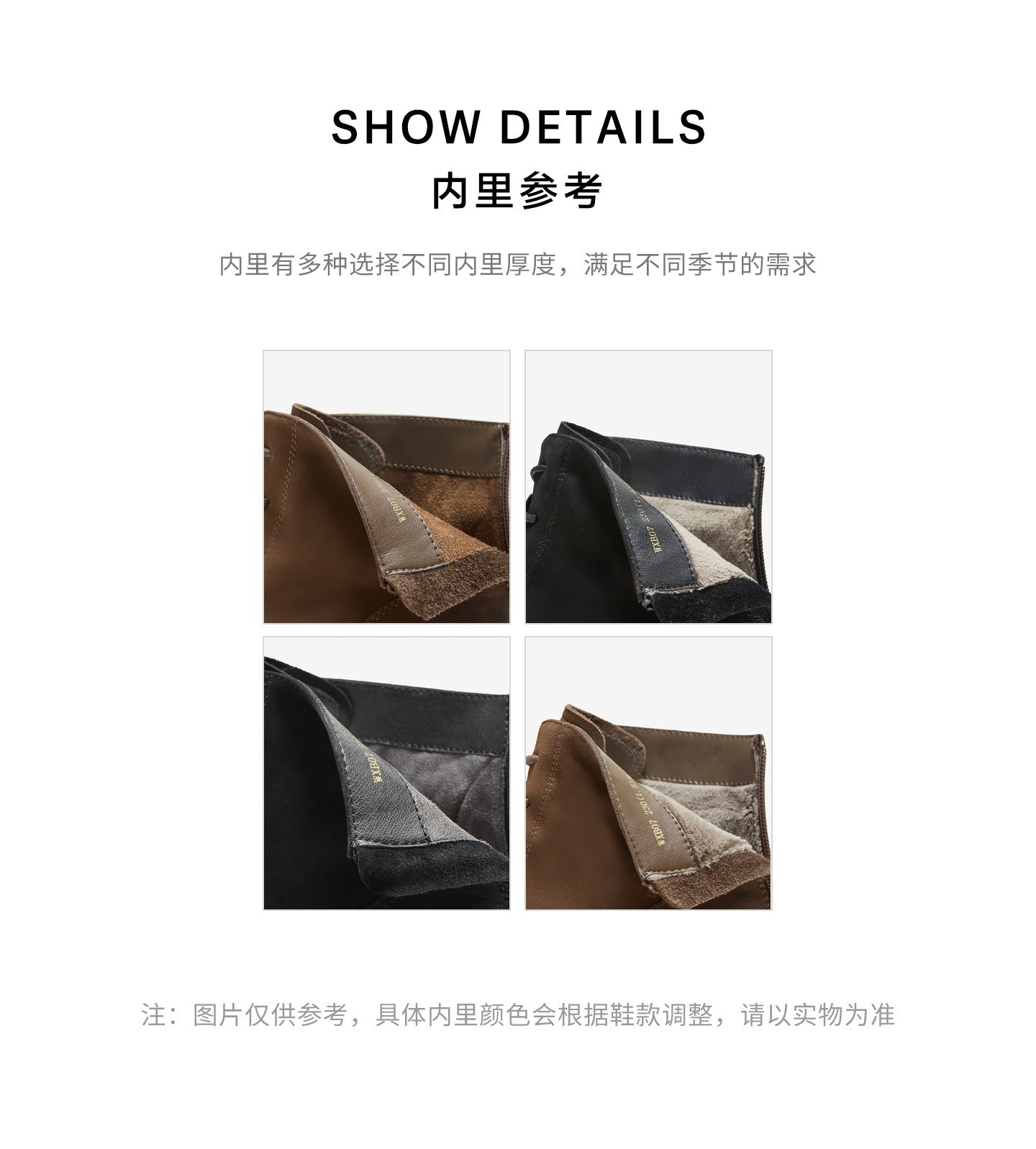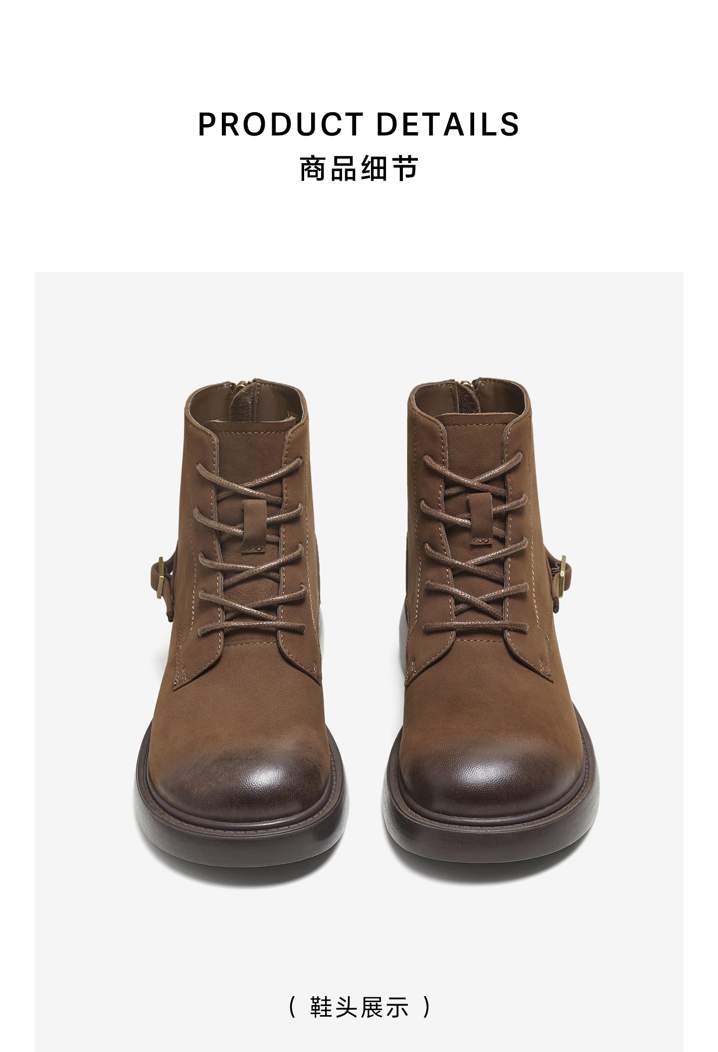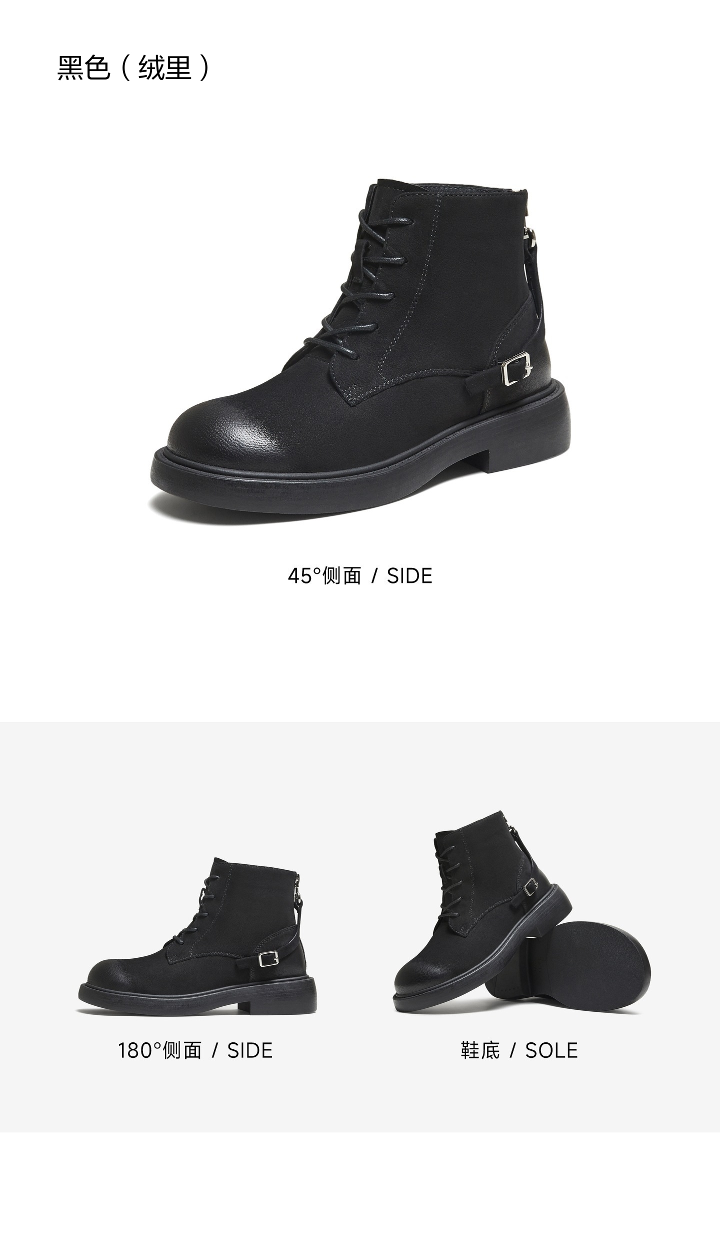 | 鞋底材质:TPR大底 | 靴筒内里材质:PU革织物面料 | 内增高:无 | 鞋面材质:羊皮革 | 闭合方式:后拉链 |