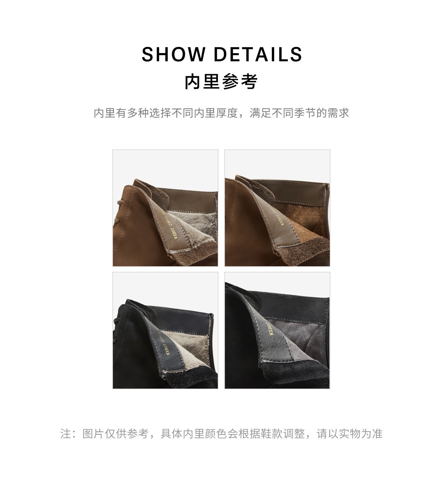| 鞋底材质:TPR大底 | 靴筒内里材质:人造短毛绒 | 内增高:无 | 鞋面材质:羊皮革 | 闭合方式:后拉链 |