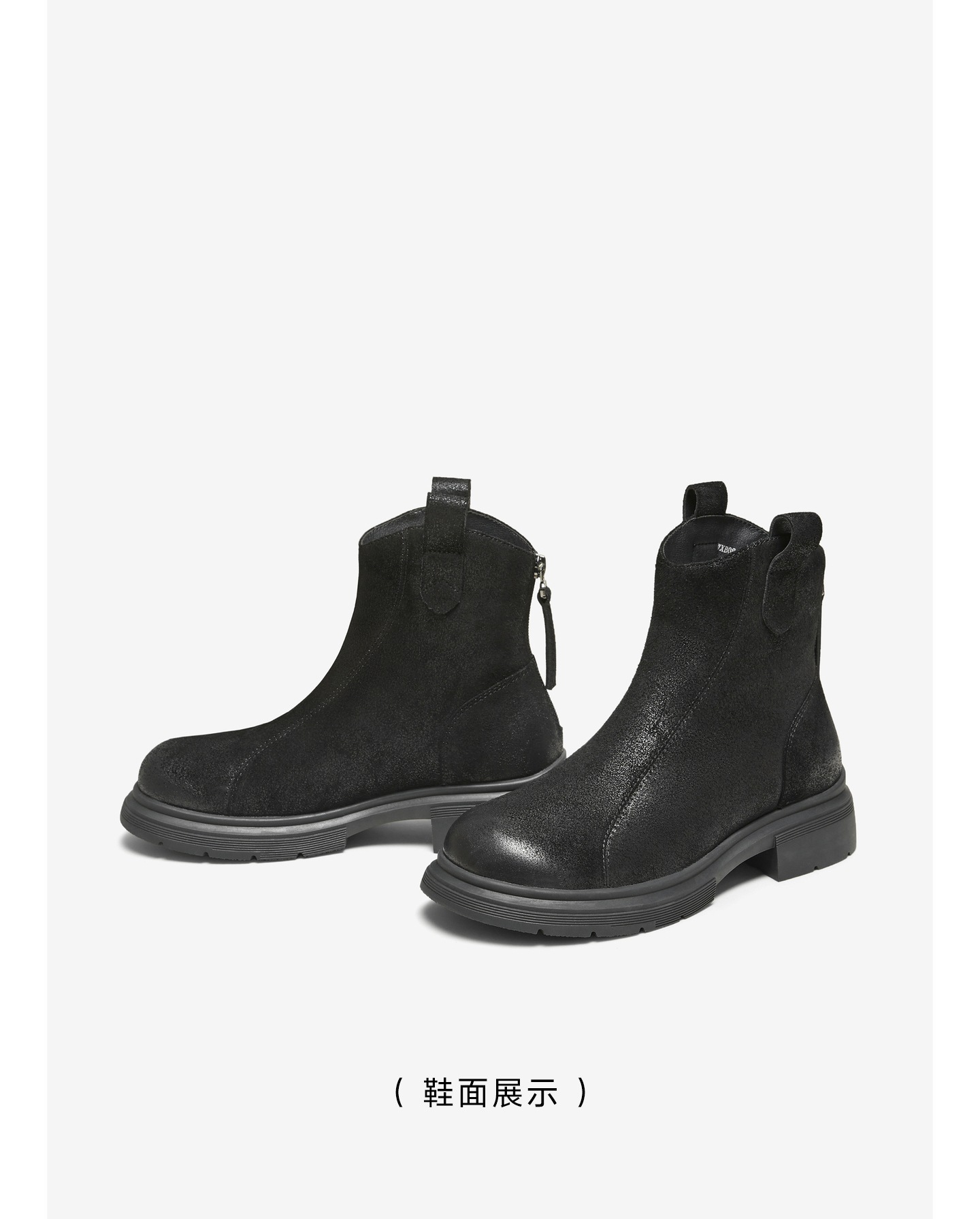 | 鞋底材质:橡胶底 | 靴筒内里材质:人造短绒毛 | 内增高:无 | 鞋面材质:牛皮革 | 闭合方式:后拉链 |