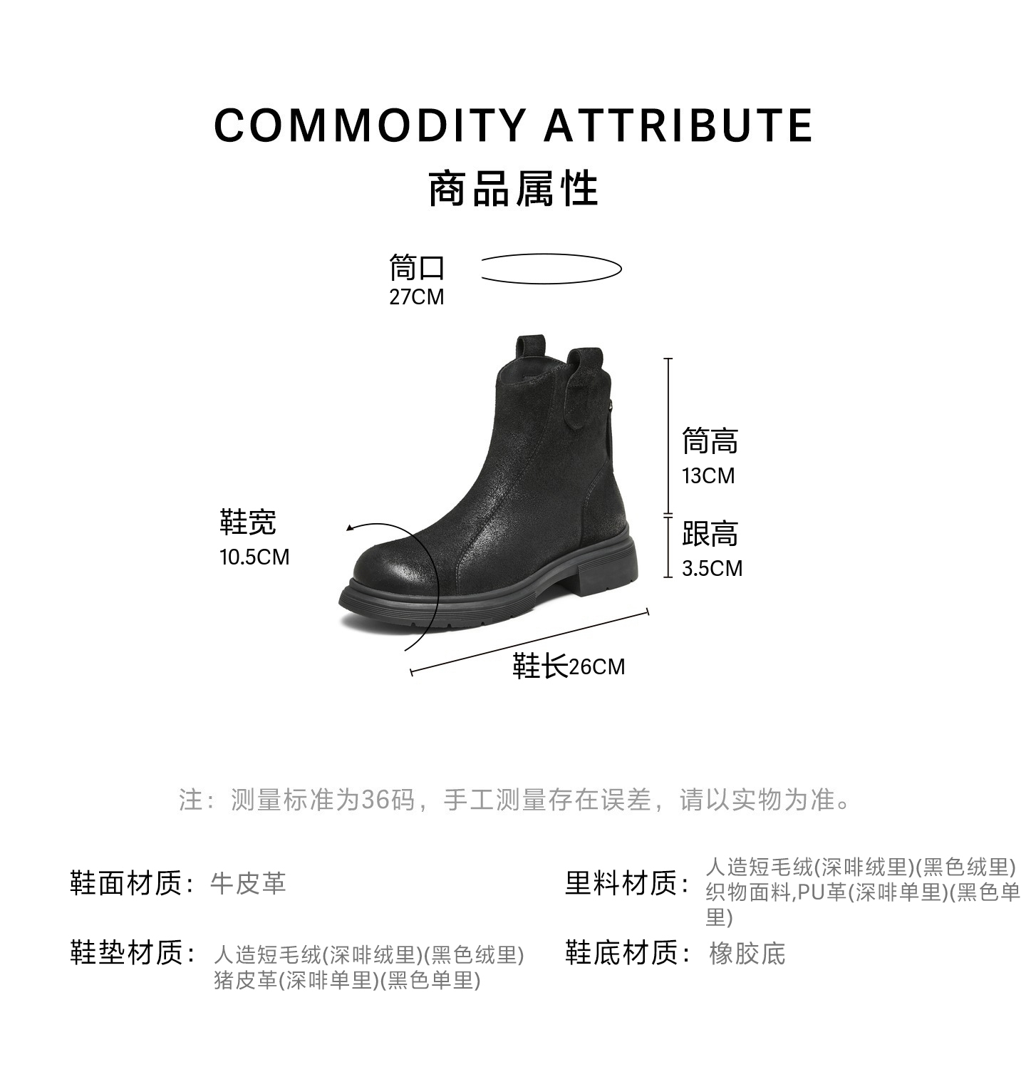 | 帮面材质:牛皮革 | 配跟:有 | 靴筒口围:27CM | 上市时间:2025年冬季 | 鞋类流行款式:短靴 |