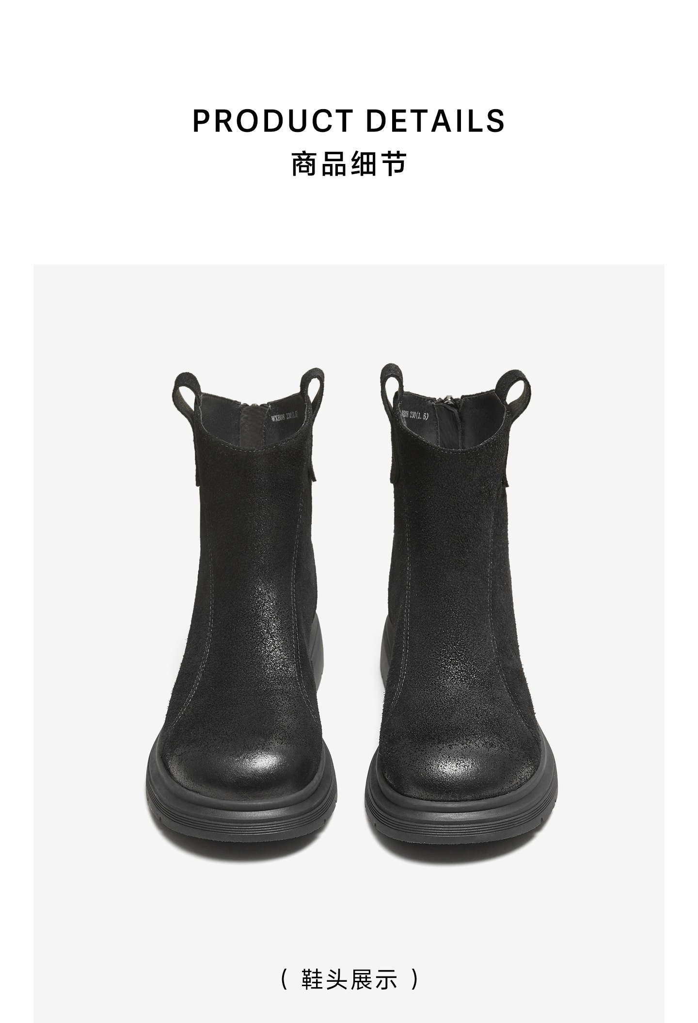 | 帮面材质:牛皮革 | 配跟:有 | 靴筒口围:27CM | 上市时间:2025年冬季 | 鞋类流行款式:短靴 |