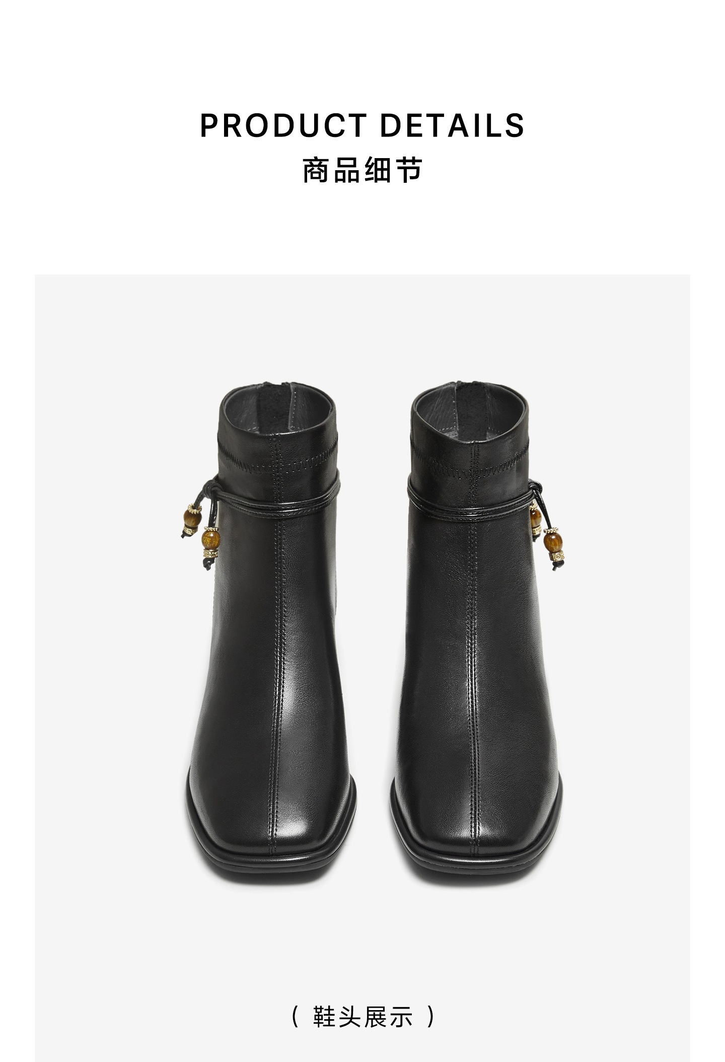 | 鞋底材质:橡胶底 | 靴筒内里材质:织物面料猪皮革 | 内增高:无 | 鞋面材质:羊皮革 | 闭合方式:后拉链 |