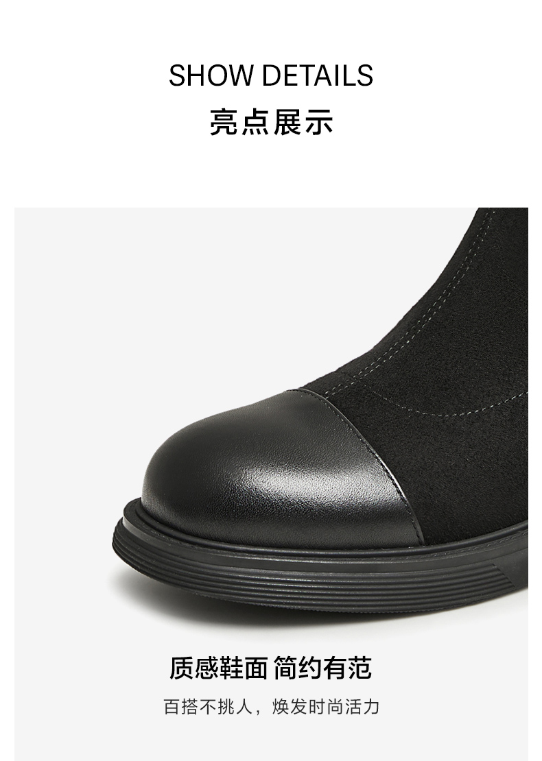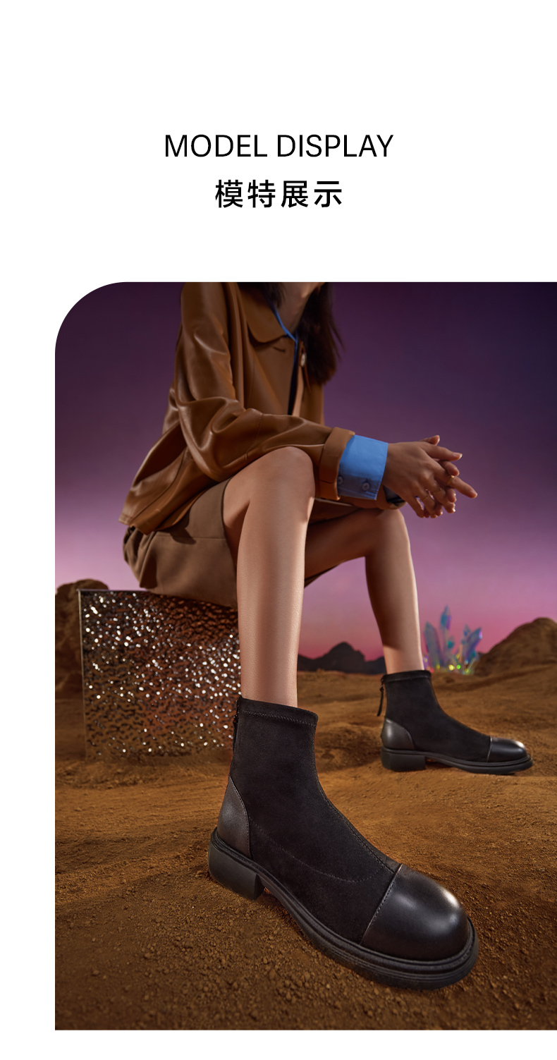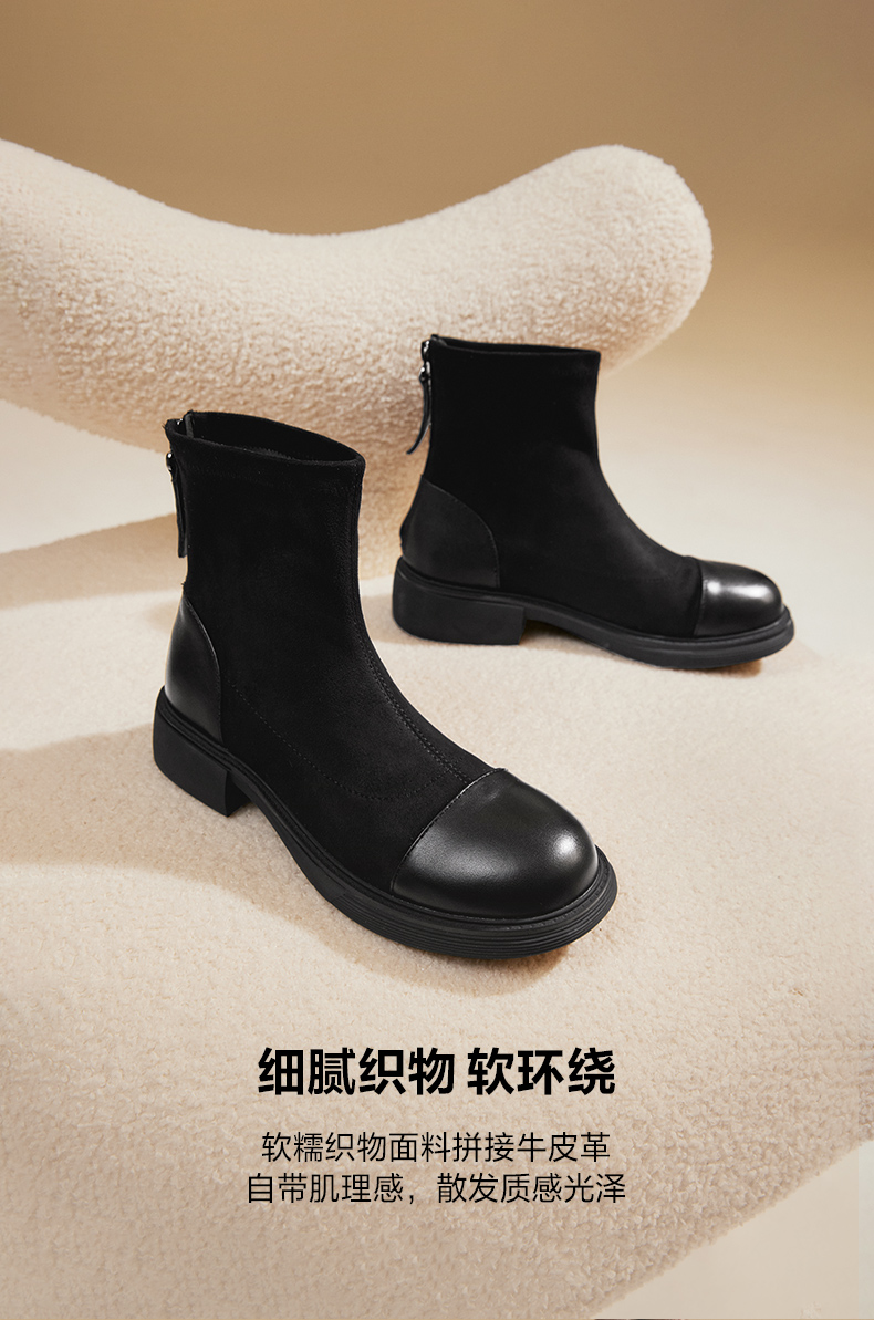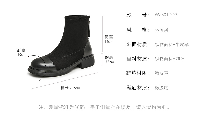 | 鞋类流行款式:时装靴 | 鞋头款式:圆头 | 执行标准:皮鞋QB/T1002-2015 | 跟高范围:中跟鞋(3-5CM) | 鞋面图案:纯色 |