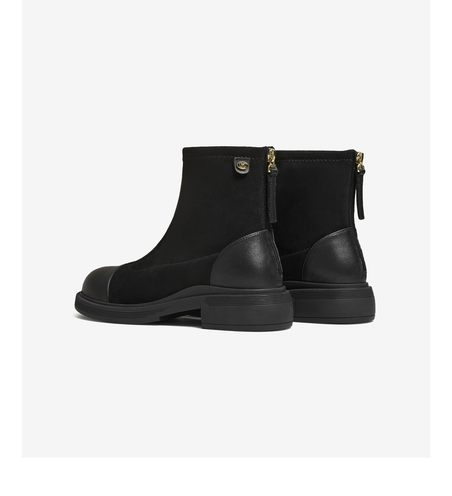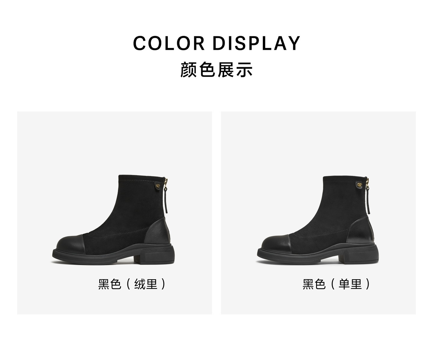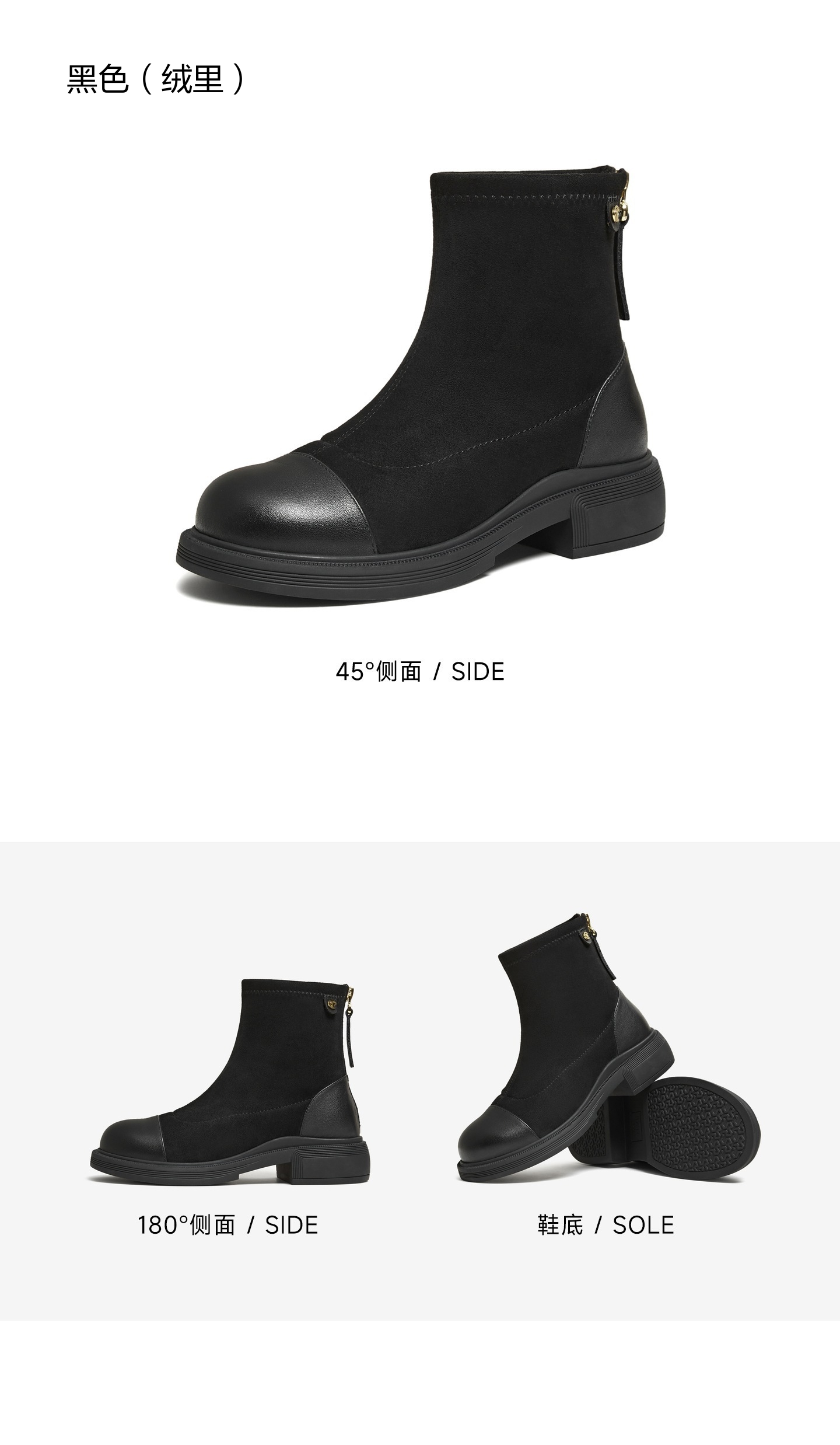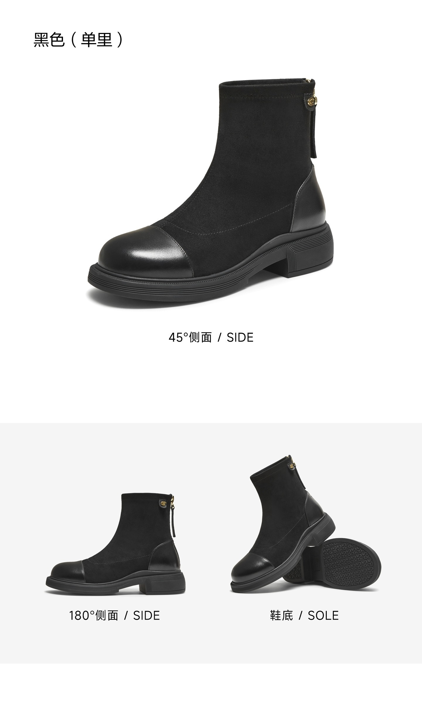 | 鞋底材质:橡胶底 | 靴筒内里材质:PU革织物面料 | 内增高:无 | 鞋面材质:牛皮革纺织品 | 闭合方式:后拉链 |