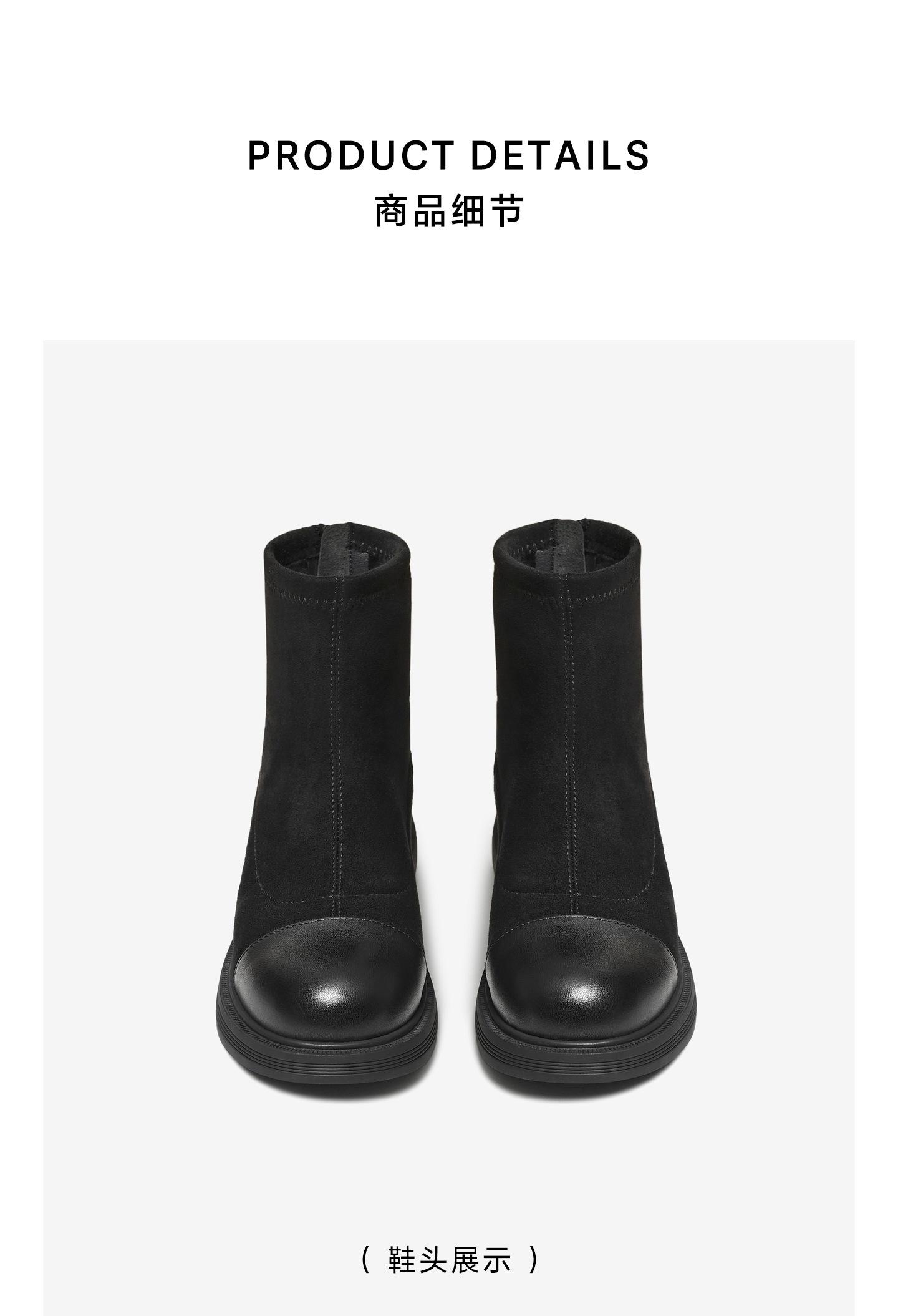 | 帮面材质:牛皮革织物 | 配跟:有 | 靴筒口围:24CM | 上市时间:2025年冬季 | 鞋类流行款式:弹力靴 |
