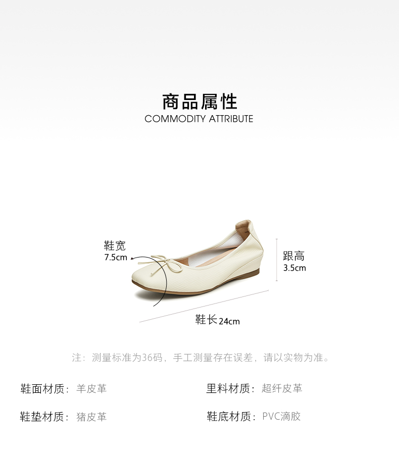 | 皮质特征:软面皮 | 前掌高度:1CM | 防水台高度:无 | 鞋类流行款式:浅口鞋 |