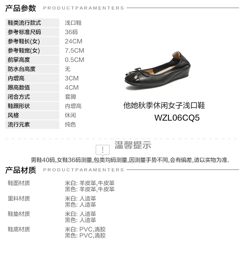 | 鞋头款式:圆头 | 鞋底材质:滴胶PVC | 鞋面图案:纯色 | 内增高:3CM | 鞋跟形状:内增高 |