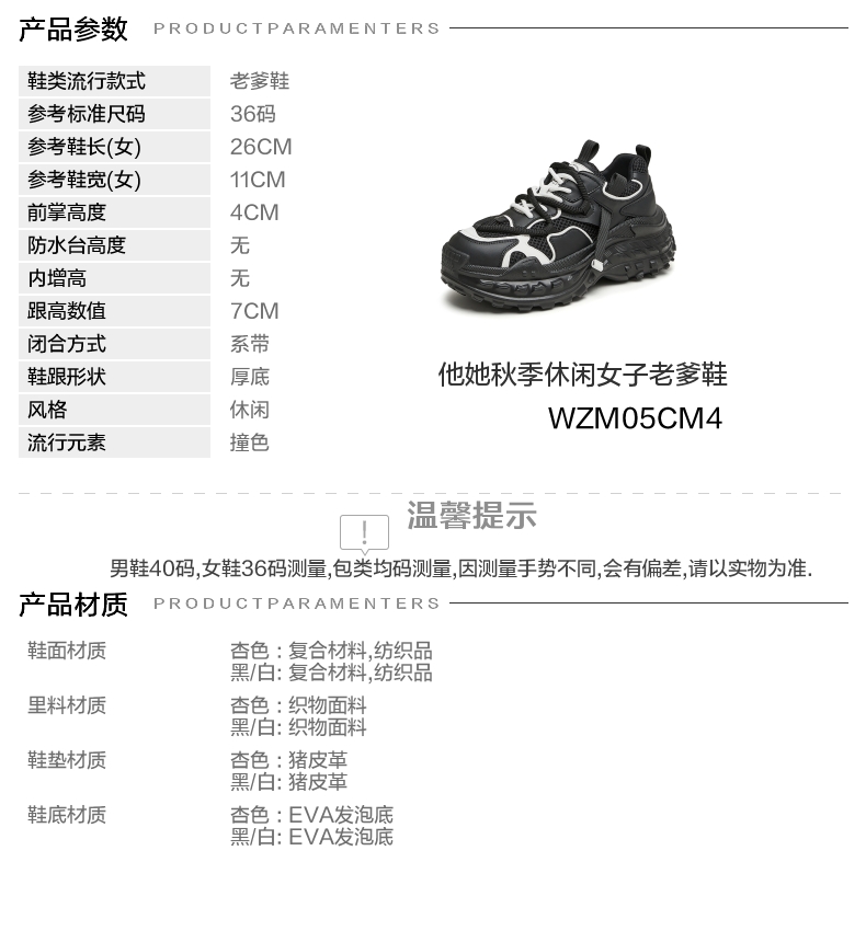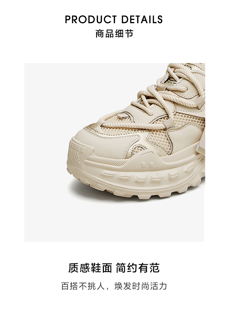 | 前掌高度:4CM | 皮质特征:复合材料/织物 | 防水台高度:无 | 鞋类流行款式:老爹鞋 |