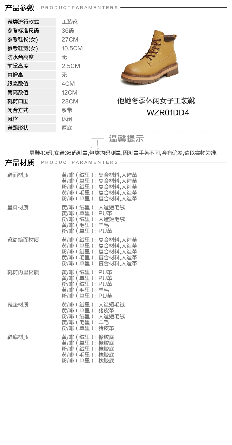 | 帮面材质:人造革复合材料 | 配跟:有 | 靴筒口围:28CM | 上市时间:2024年冬季 | 鞋类流行款式:工装靴 |