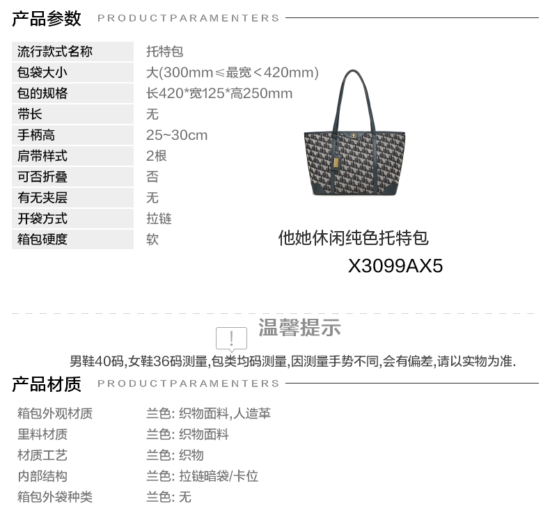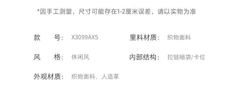 | 里料材质:织物面料 | 手柄高:25~30cm | 上市时间:2025年春季 | 款式季节:秋季 | 材质工艺:织物 |