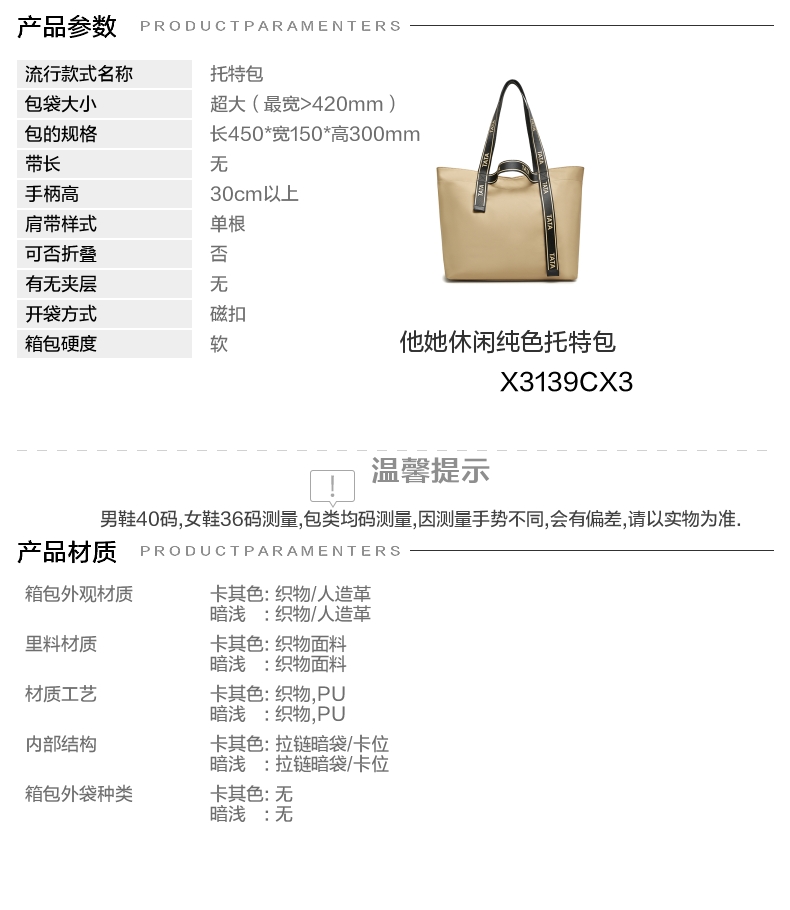 | 色系:卡其 | 集团旧货: | 适用场景:休闲 | 流行款式名称:托特包 | 开袋方式:磁扣 |