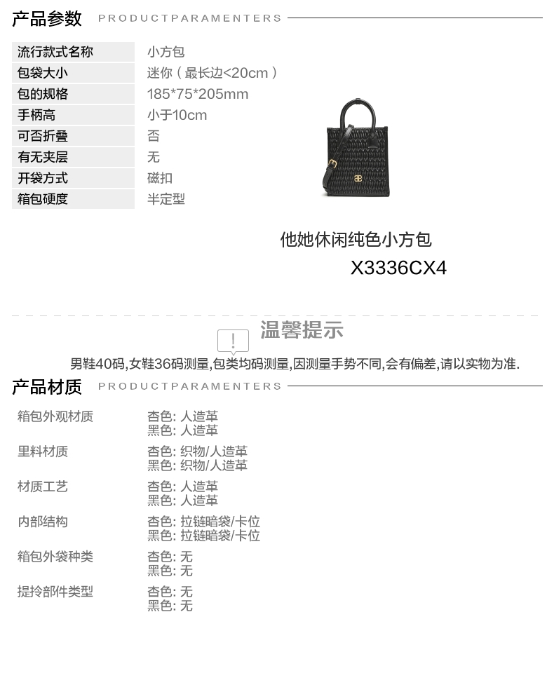 | 流行款式名称:小方包 | 开袋方式:磁扣 | 性别:女子 | 里料材质:织物/人造革 | 手柄高:小于10cm |