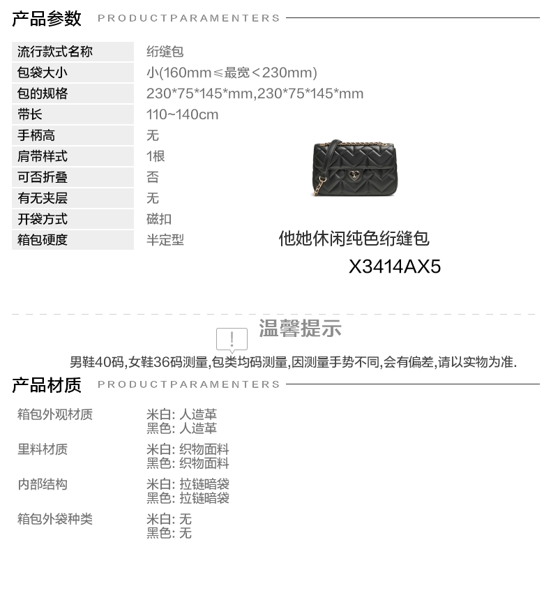 | 年份:2025年 | 色系:黑色 | 适用场景:休闲 | 流行款式名称:绗缝包 | 开袋方式:磁扣 |