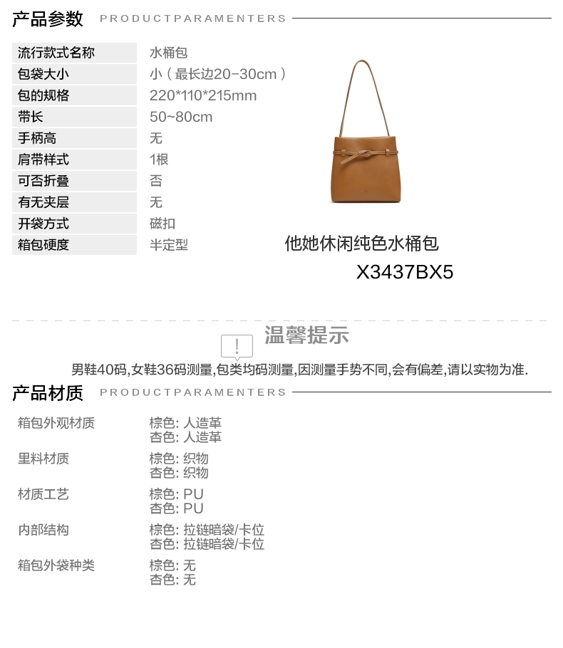 | 色系:杏色 | 适用场景:休闲 | 开袋方式:磁扣 | 性别:女子 | 是否防水:否 |