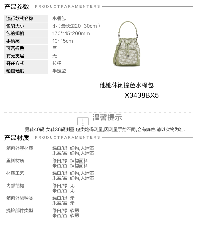 | 适用场景:休闲 | 开袋方式:拉绳 | 性别:女子 | 是否防水:否 | 里料材质:织物面料 |