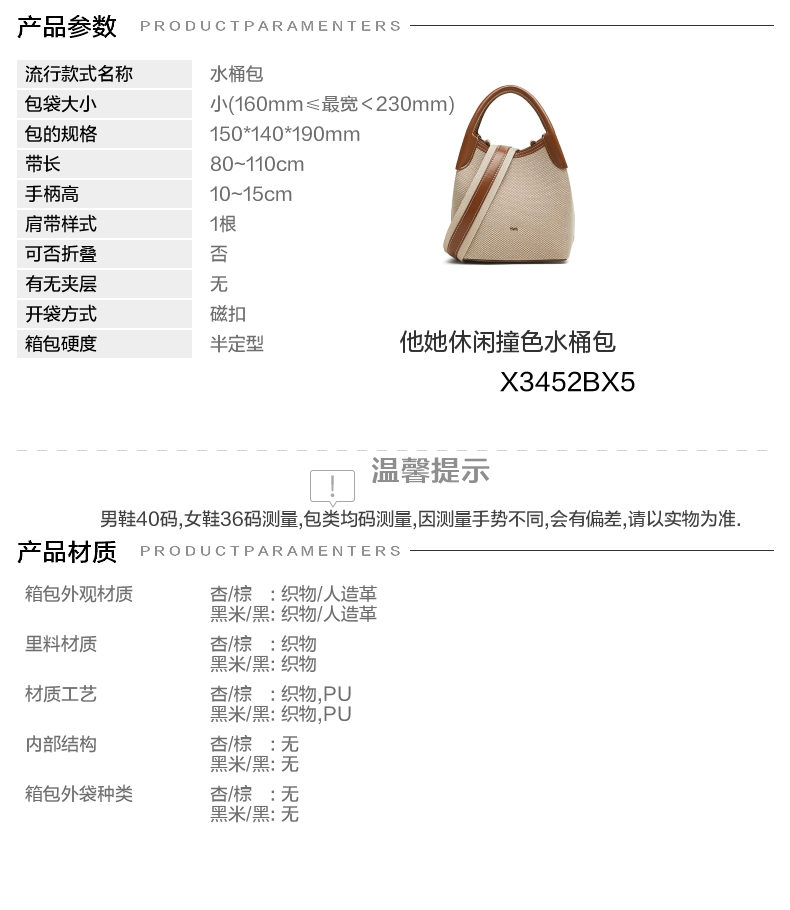 • TATA/他她2025夏商场同款时尚百搭水桶包新款X3452BX5