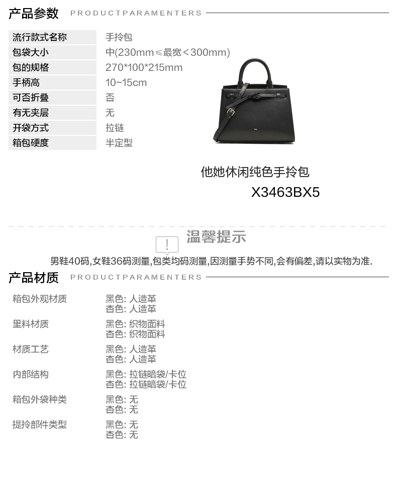 | 包袋大小:中(230mm≤最宽<300mm) | 箱包图案:纯色无图案 | 手柄:有 | 箱包外袋种类:无 | 可否折叠:否 |