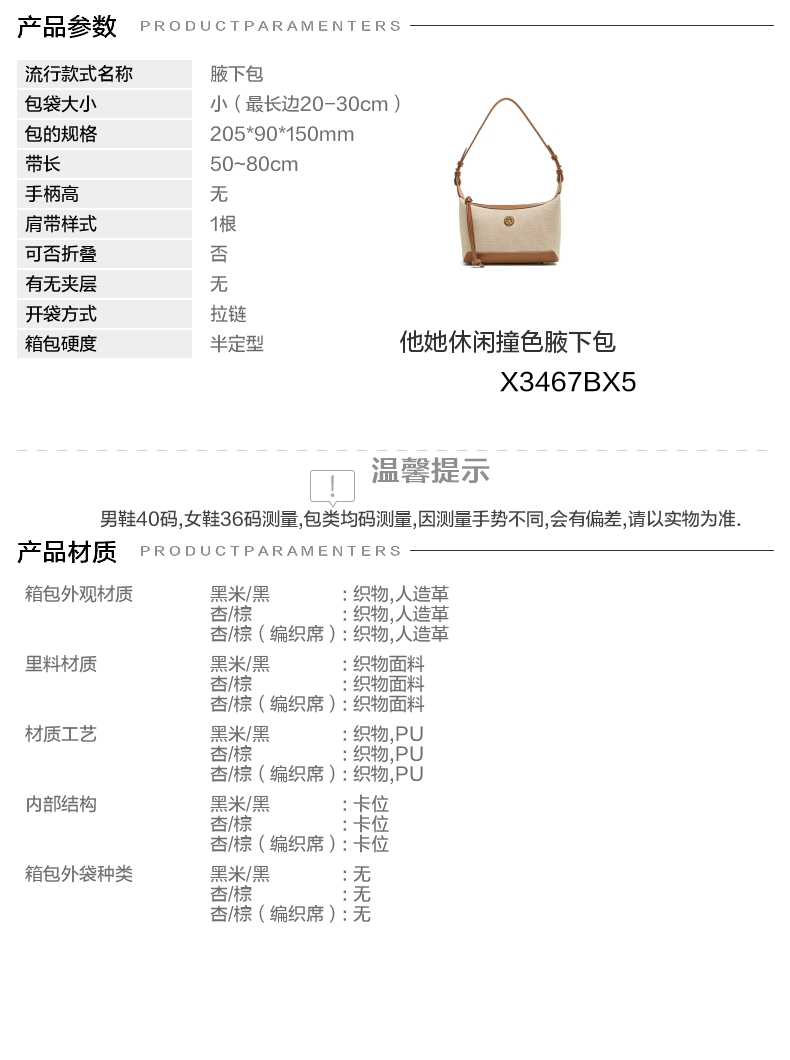 适用场景:休闲 流行款式名称:腋下包 开袋方式:拉链 性别:女子 里料材质:织物面料