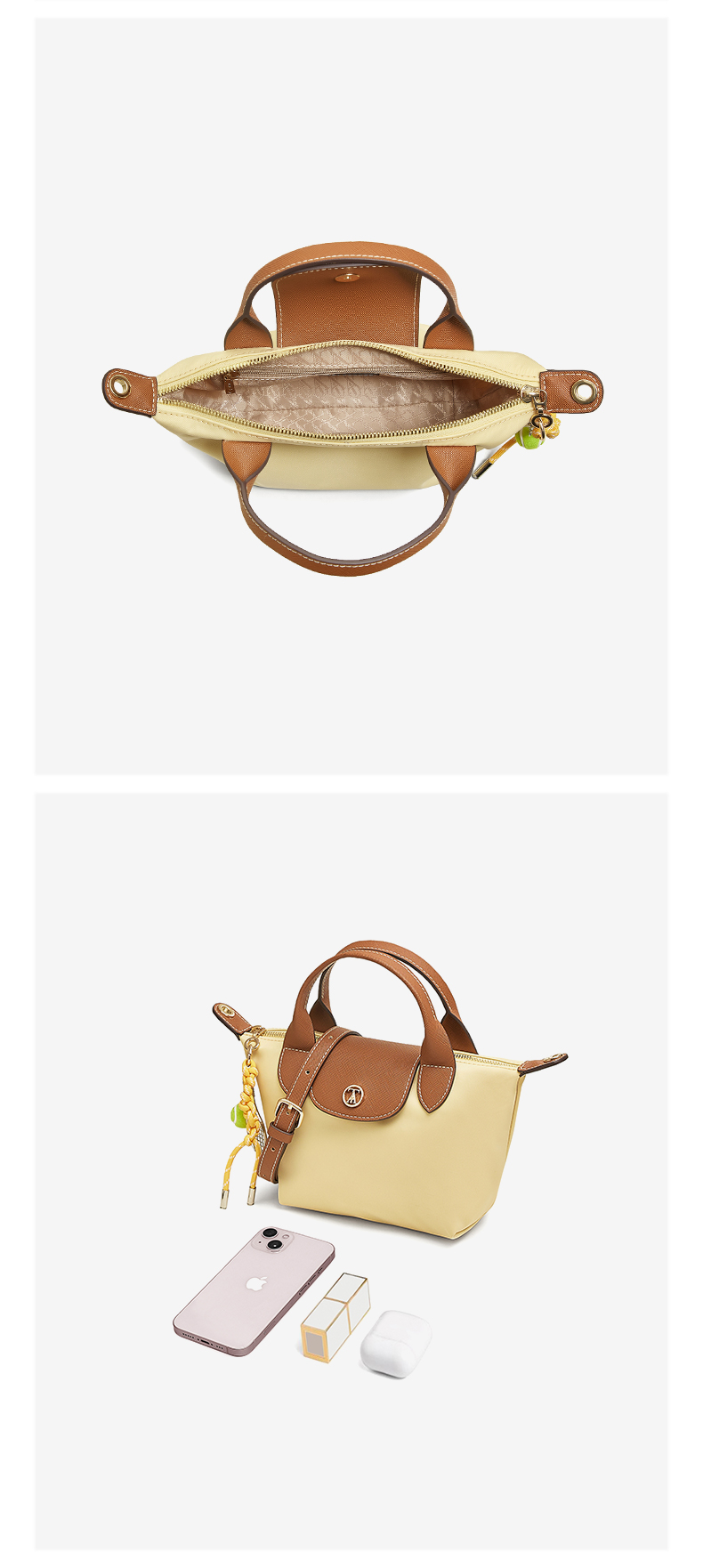 | 背带方式:手提/斜挎 | 有无夹层:无 | 风格:休闲 | 年份:2025年 | 色系:米色 |